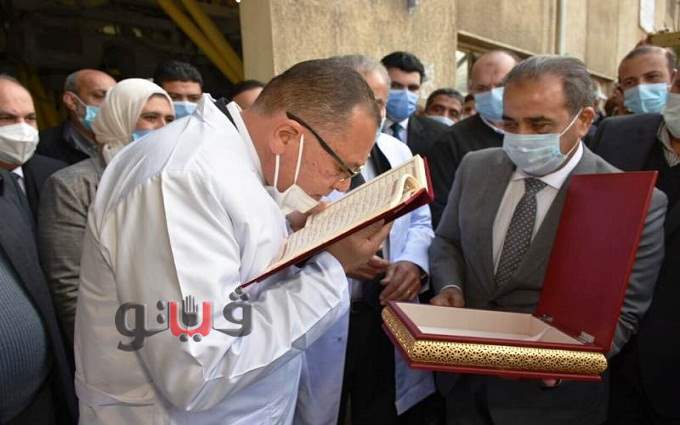 وأهدى العاملون بالمطحن وزير التموين ومحافظ الشرقية نسخة من كتاب الله، تقديراً لجهودهما في الارتقاء بمنظومة العمل داخل قطاع التموين بالمحافظة، وتقديم أفضل الخدمات للمواطنين.