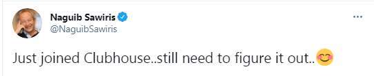 وكتب نجيب ساويرس تغريدة على تويتر قال فيها: "انضممت للتو إلى تطبيق كلوب هاوس.. ما زلت بحاجة إلى معرفة ذلك".