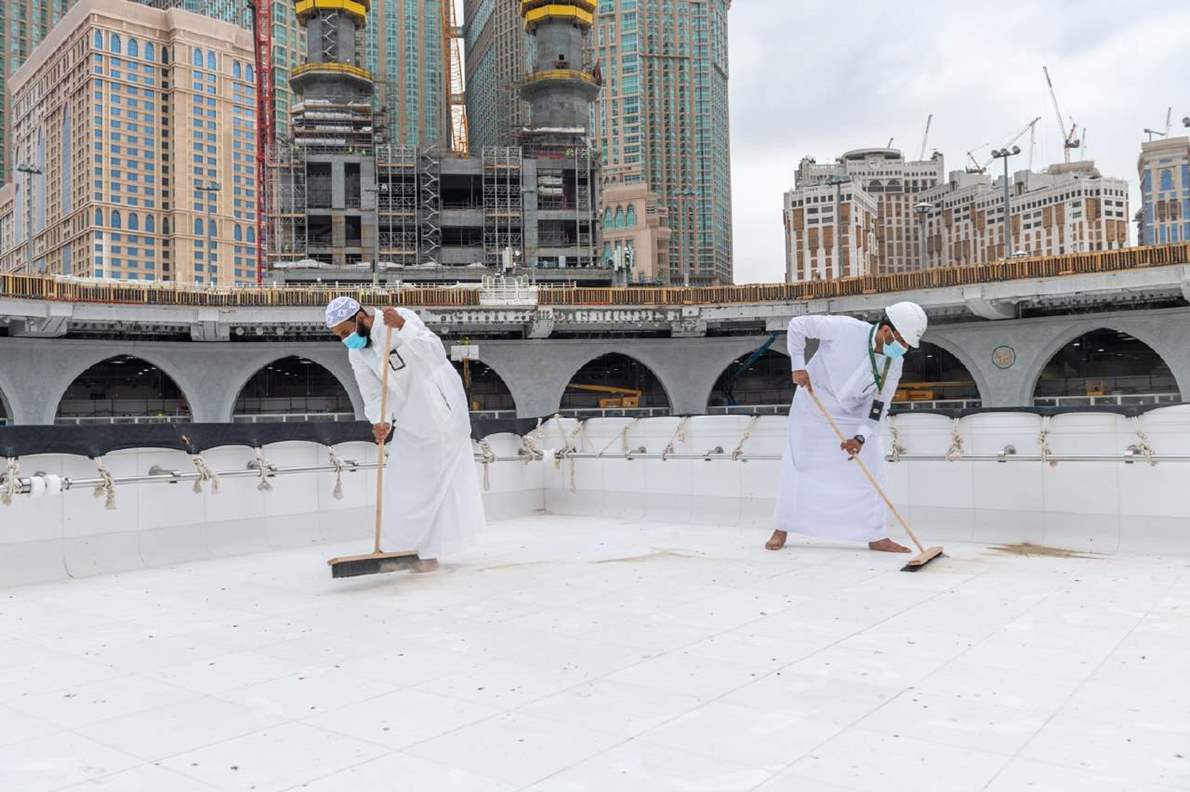 وذكر وكيل الرئيس العام للشؤون الفنية والخدمية الأستاذ محمد بن مصلح الجابري أنه تتم آلية التنظيف من خلال عدة مراحل أولها كنس سطح الكعبة المشرفة، وإزالة الأتربة وفضلات الطيور، ثم مسح السطح كاملاً وحامل الكسوة، والجدار الحائط، وباب سطح الكعبة من الخارج بالأقمشة المبللة، بعد ذلك تستخدم الآليات والتقنيات الحديثة التي وفرتها الرئاسة العامة وهي آليات تقوم بالتغسيل والتشطيف والشفط، ثم يرش السطح بالماء مرة أخرى ويمس وبعدها مرحلة التجفيف.