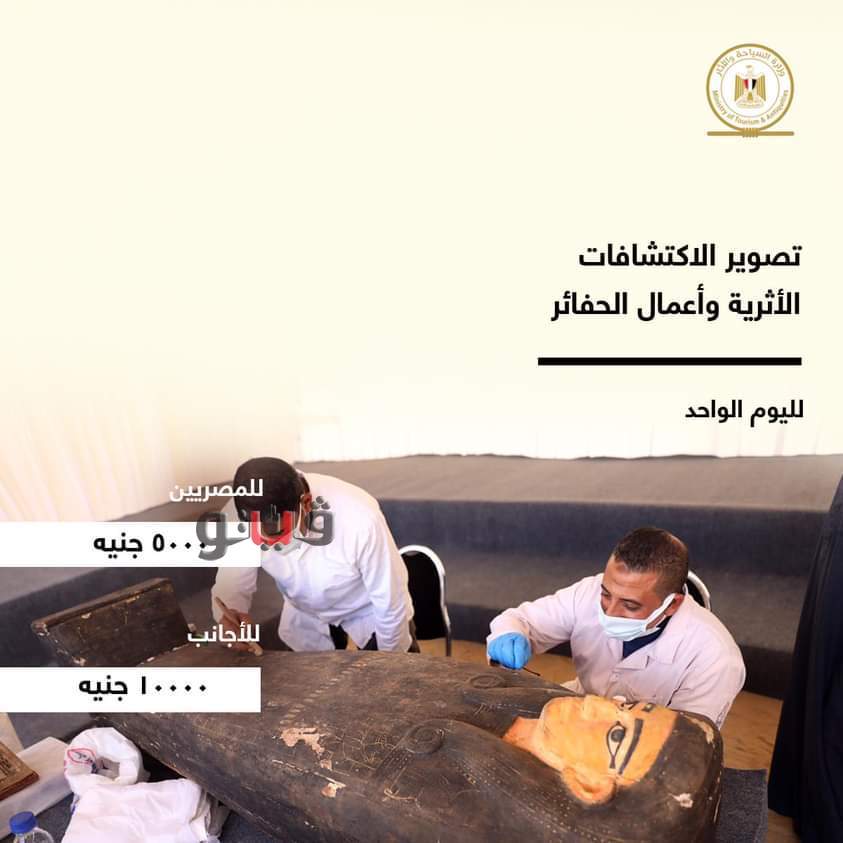 وحدد المجلس أسعار التصوير الفوتوغرافي الاكتشافات الاثرية وأعمال الحفائر وذلك أثناء مواعيد العمل الرسمية ب 1000 جنيها لليوم الواحد بالنسبة للمصرين، و 2000 جنيها للأجانب لليوم الواحد أيضا، كما تم تحديد أسعار التصوير الفيدبو الاكتشافات الاثرية وأعمال الحفائر وتصل إلي 5000 ألف جنيها للمصريين لليوم الواحد، و 10000 جنيها للأجانب.