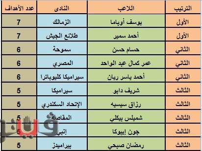 جدول ترتيب هدافي الدوري الممتاز بعد انتهاء مباراتي اليوم الأحد
