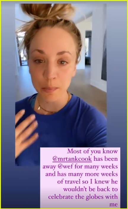 وقالت في مقطع فيديو على موقع Instagram Story: "يعرف معظمكم أن كارل كان بعيدًا لعدة أسابيع ولديه العديد من الأسابيع من السفر، لذلك كنت أعلم أنه لن يعود للاحتفال معي بحفل جولدن جلوب".