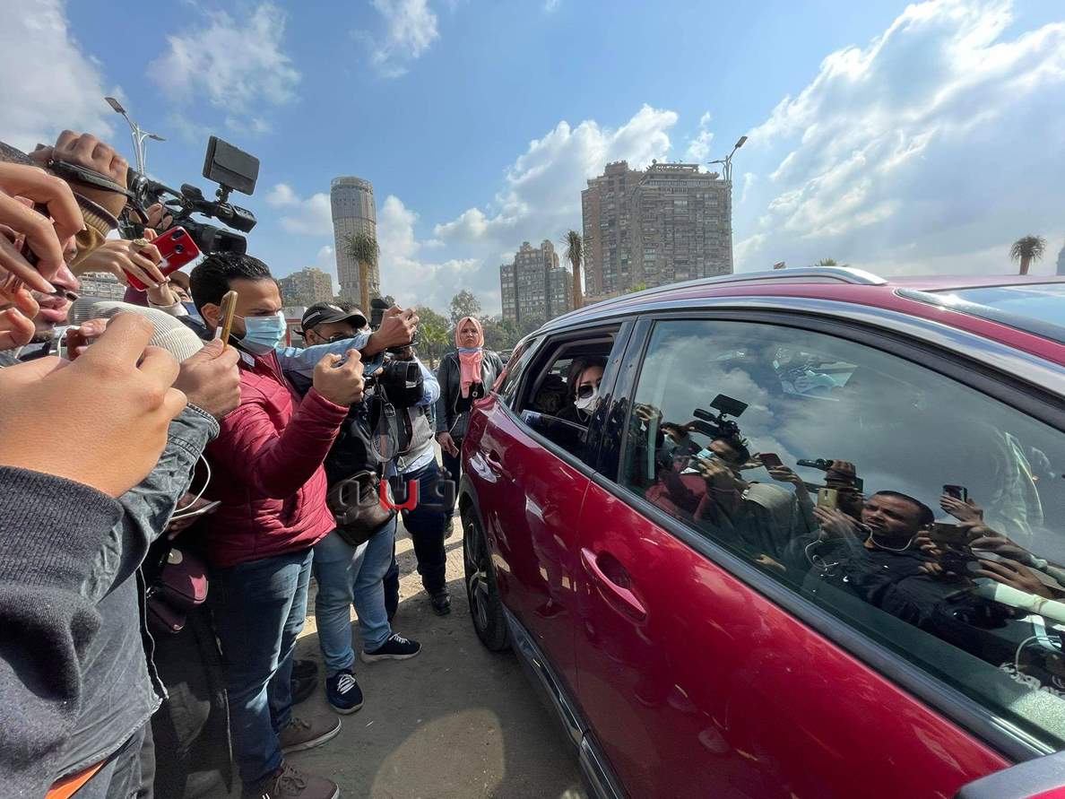 الفنانة نهال عنبر، منذ قليل إلى مستشفى العجوزة، للمشاركة في جنازة الفنان الراحل