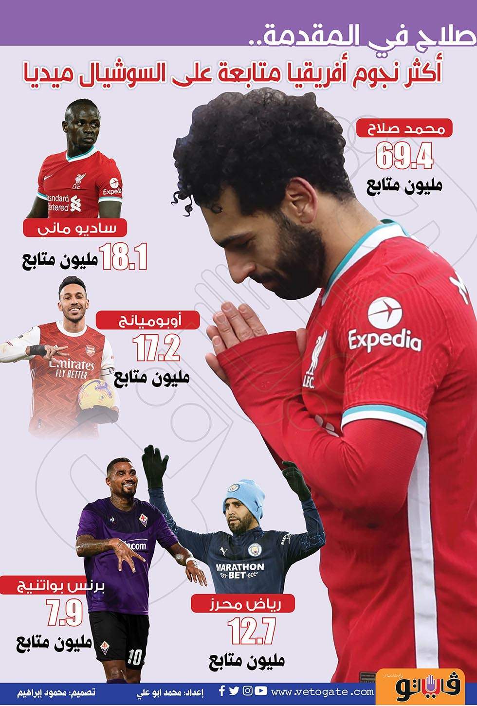 صلاح في المقدمة.. أكثر نجوم أفريقيا متابعة على السوشيال ميديا| إنفوجراف