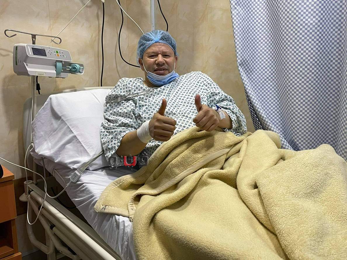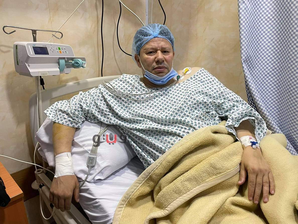وتابع: "في اليوم التالي ذهبت إلى الطبيب وقام بعمل رسم قلب بالمجهود ورسم قلب عادي وايكو وطلب تحاليل أخرى ثم مسح ذري يوم السبت الماضي، وتم إبلاغ نجلي بالحضور للمستشفى فور عودتي من حلقة بإحدى القنوات الفضائية ليقرر الأطباء إجراء جراحة عبارة عن قسطرة بالقلب والتي تمت فجر اليوم".