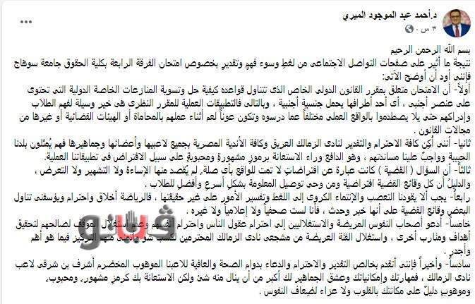 أول تعليق من أستاذ حقوق سوهاج صاحب سؤال وفاة بن شرقي