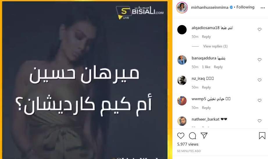 بثت ميرهان حسين مقطع فيديو، عبر حسابها على انستجرام، تقارن فيه بينها وبين كيم كردشان، وطرحت استطلاع الرأي على حسابها، للتعرف من جمهورها على وجه الشبه بين إطلالتها وإطلالة كيم كردشيان.