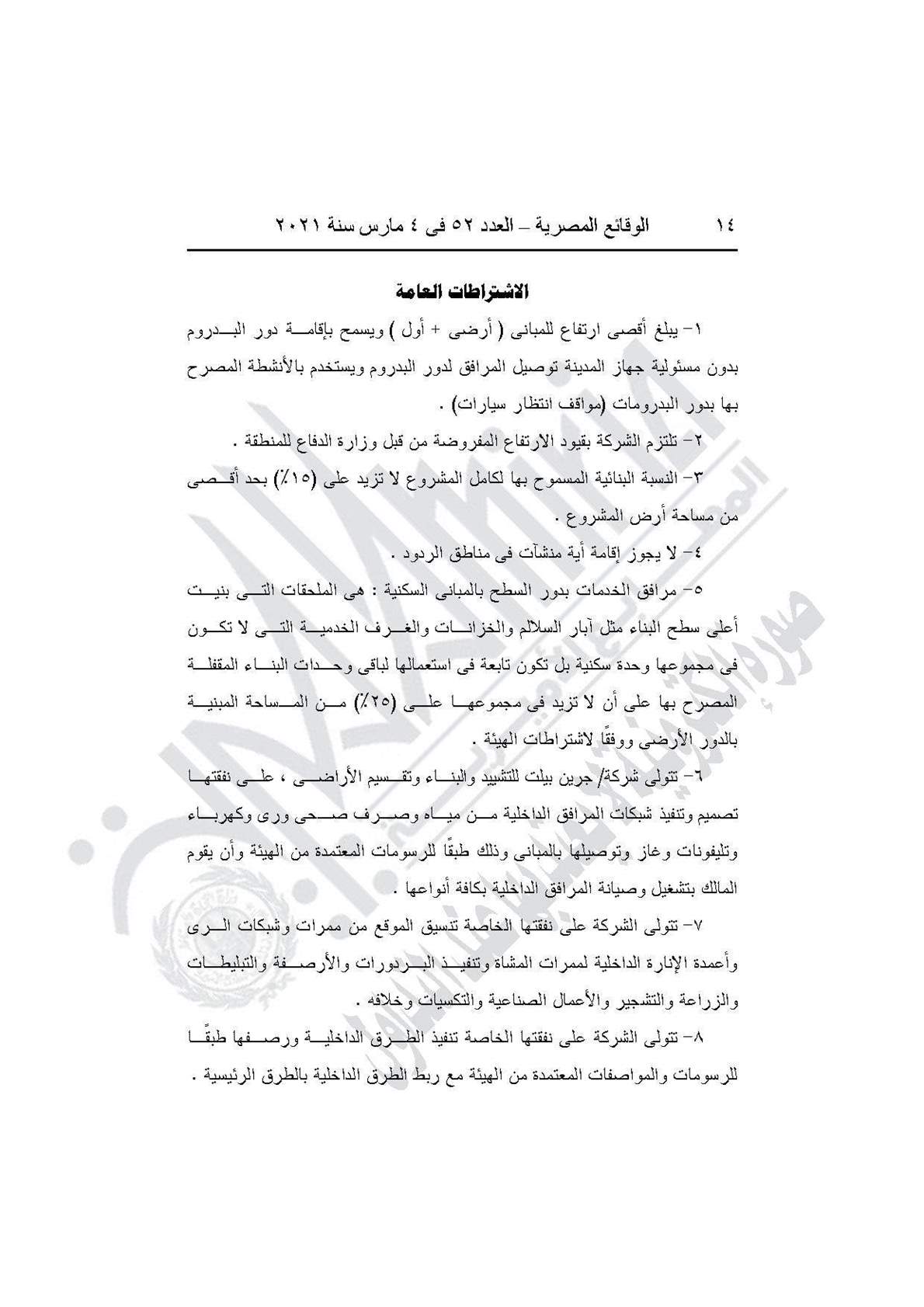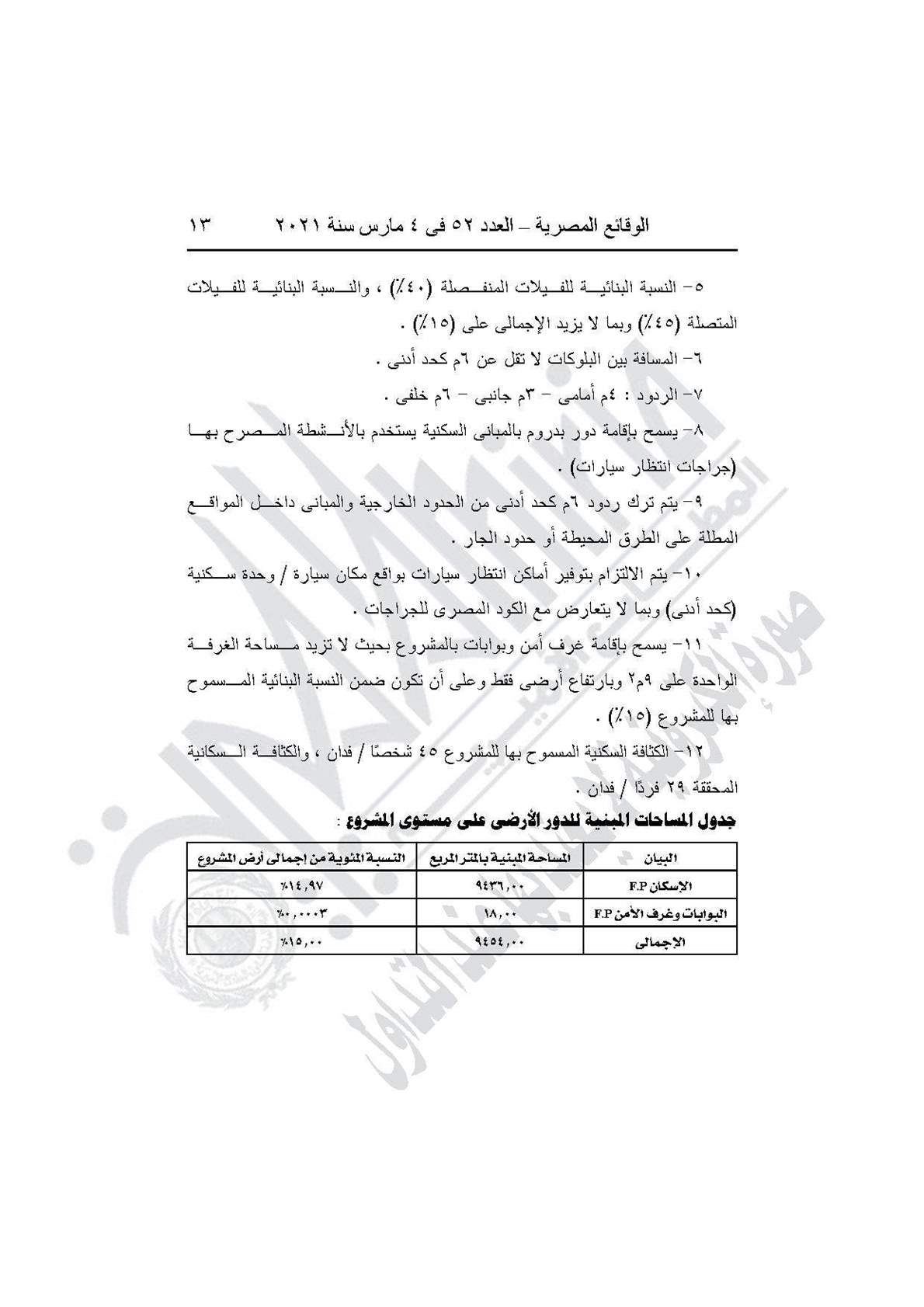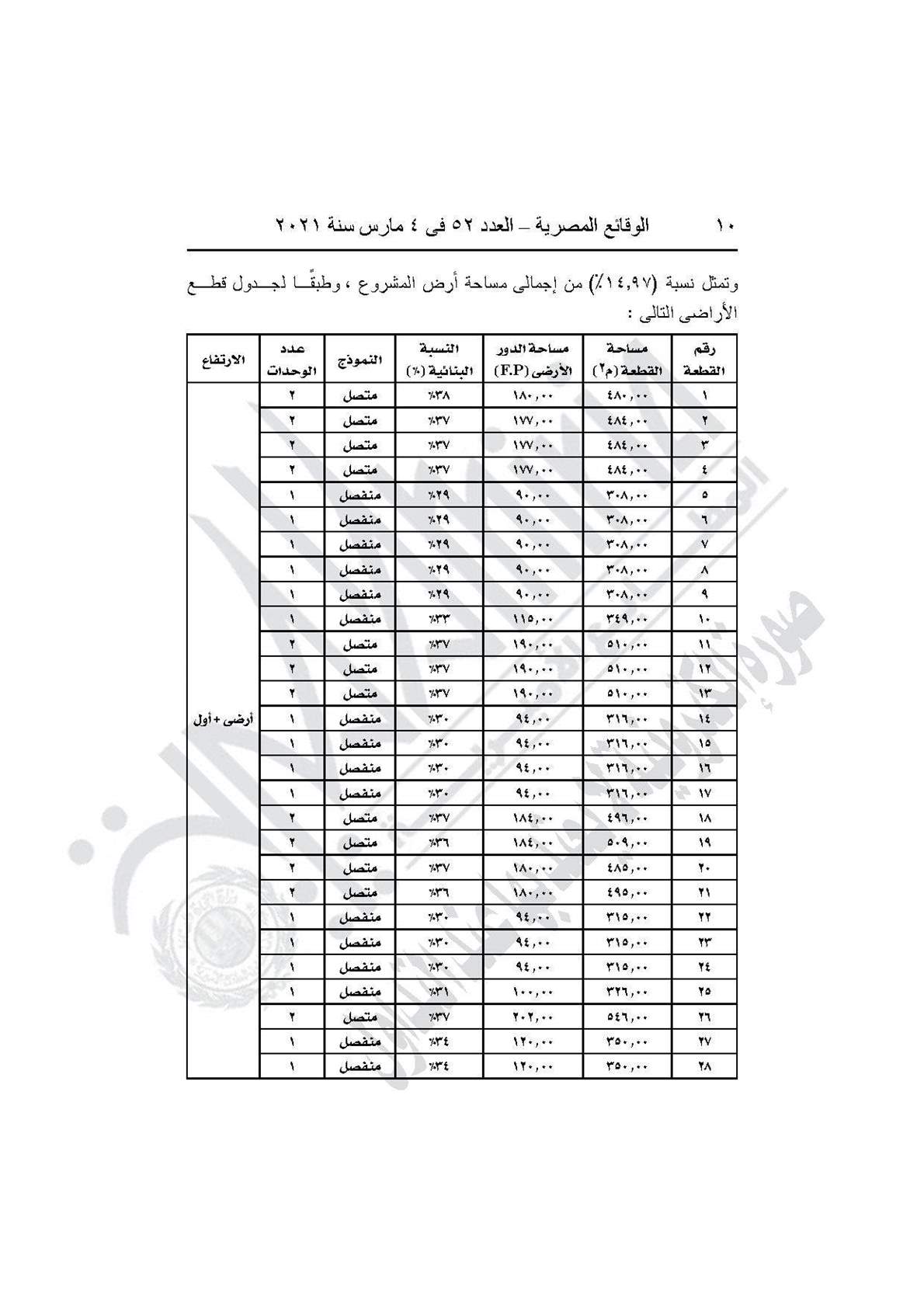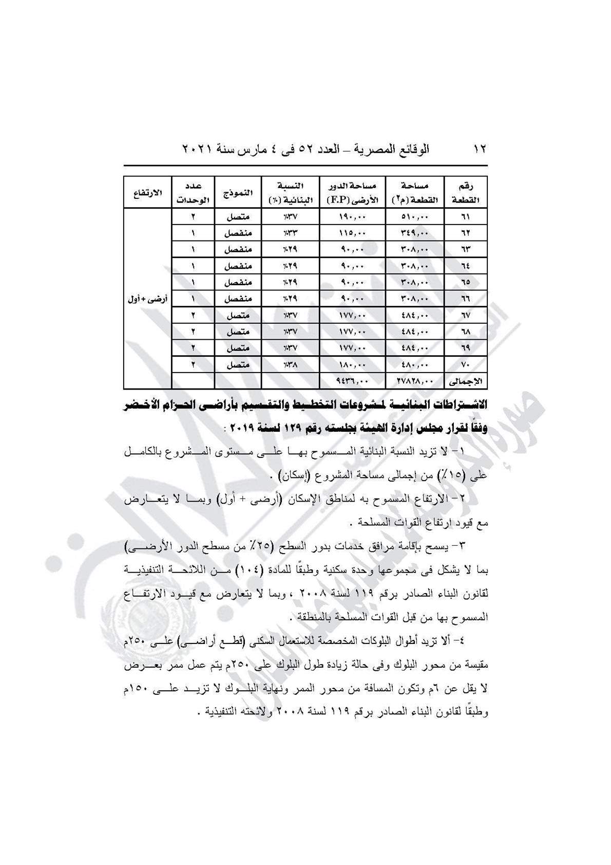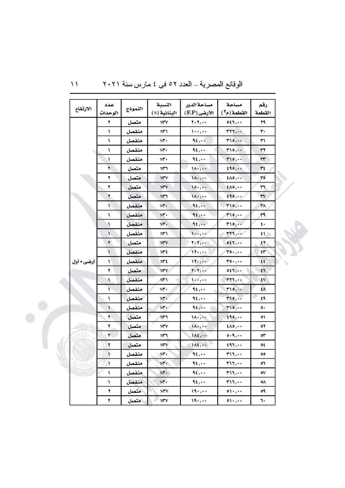 نشرت جريدة الوقائع المصرية في عددها رقم 52، الصادر في 4 مارس 2021، قرار وزارة الإسكان والمرافق والمجتمعات العمرانية رقم 994 لسنة 2020، باعتماد تخطيط وتقسيم قطعة الأرض رقم (1ب/1، 1ب/2، 1أ/2) بمساحة 15 فدانًا الواقعة بالحوض رقم (11) بالحزام الأخضر بمدينة 6 أكتوبر لإقامة نشاط سكني بمقابل نقدي.