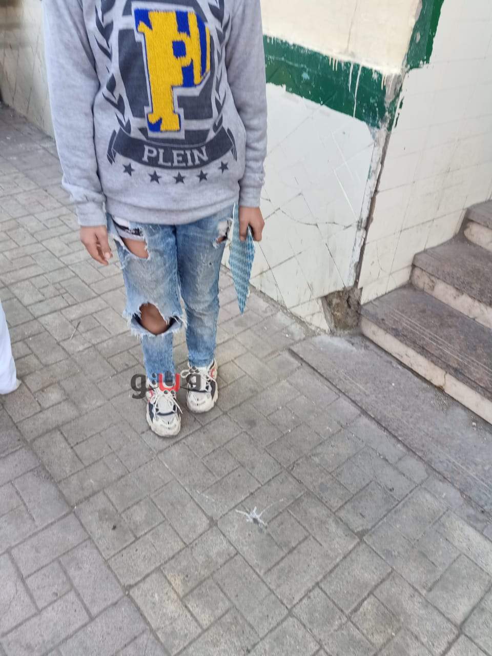 الطالب بعد تغيير البنطلون المقطع وارتداء بنطلون آخر