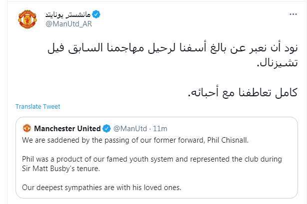 وكتب نادي مانشستر تغريدة علة تويتر " نود أن نعبر عن بالغ أسفنا لرحيل مهاجمنا السابق فيل تشيزنال. كامل تعاطفنا مع أحبائه"