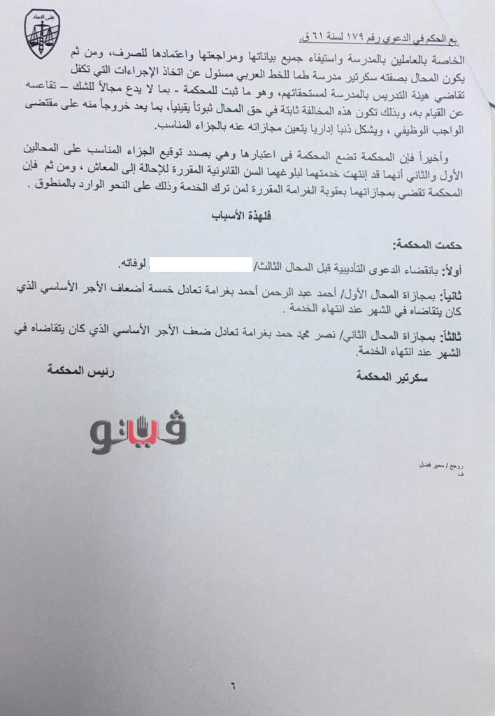 تأديب مدير وسكرتير مدرسة الخط العربي بتهمة اختلاس مصروفات التلاميذ