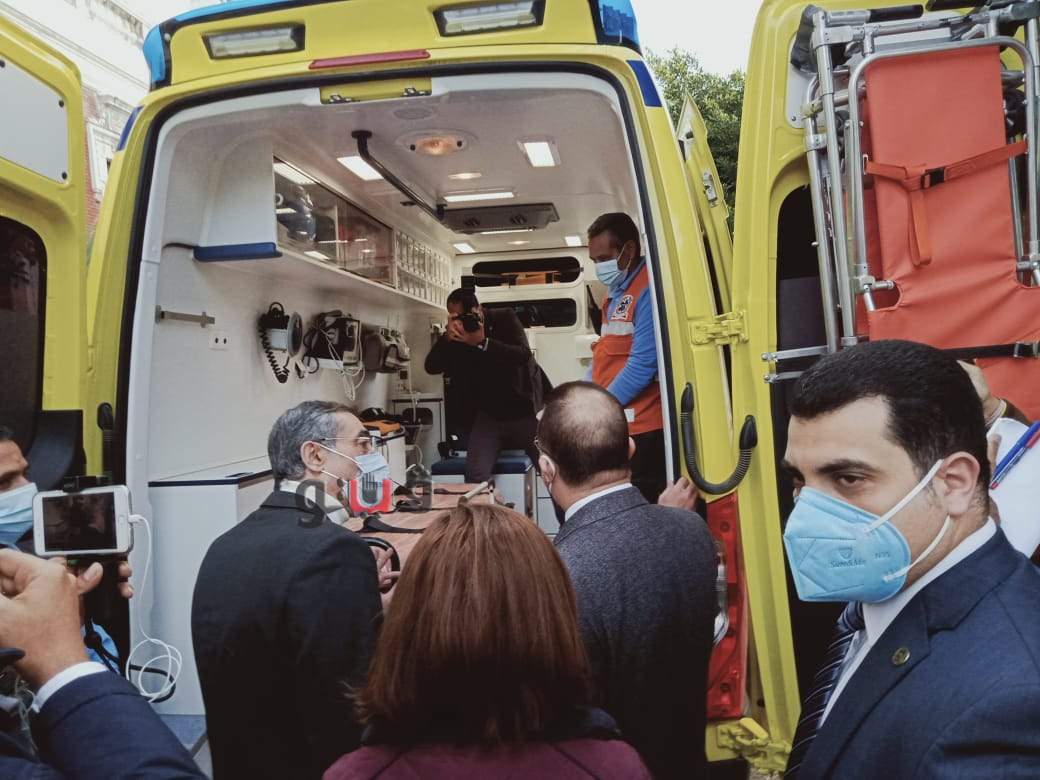 وتفقد المحافظ الـ 6 سيارات إسعاف الجديدة المجهزة بتجهيزات عناية مركزة بأحدث إمكانيات على مستوى العالم، ليصل بذلك عدد سيارات أسطول مرفق الإسعاف بالإسكندرية إلى 115 سيارة مجهزة. فضلا عن إضافة 36 جهاز تنفس صناعي لسيارات الإسعاف العاملة. وذلك في إطار زيادة الخدمة الإسعافية المقدمة للمواطن السكندري.