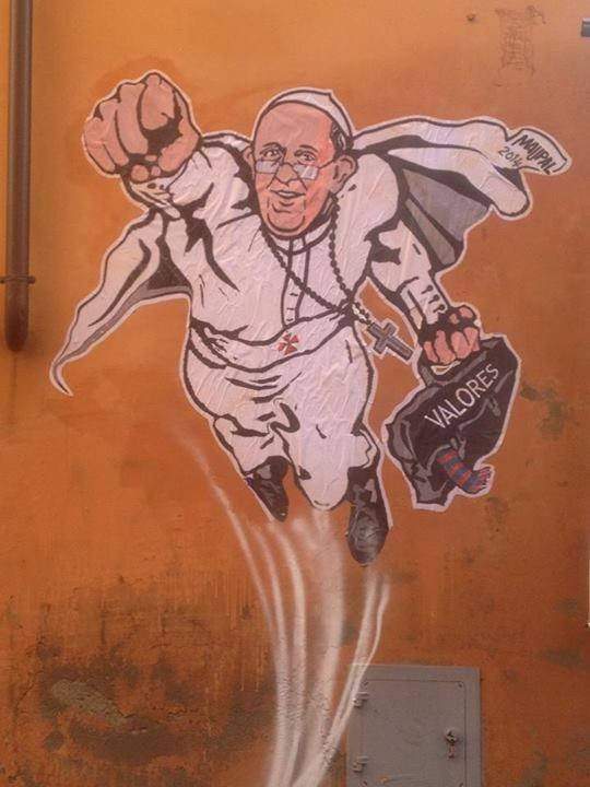 ويفضل أتباع البابا أن يعطوا للحقيبة معاني روحية، على نحو ما استوحى أحد الرسامين في رسمة للبابا على جدران حي بمدينة روما، حين كتب عليها باللغة الإسبانية Valores، أي ”القيم“.