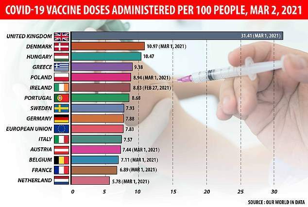 كما يواصل مسؤولو الاتحاد الأوروبي بشكل علني الإصرار على أن جميع البالغين سيتم تطعيمهم بحلول نهاية الصيف، بما يتماشى مع المملكة المتحدة.