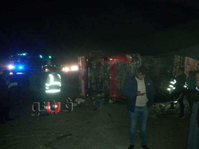 ليلة دموية.. تفاصيل مصرع 20 وإصابة 3 في تصادم "تريلا" بـ"ميكروباص" بالصحراوي الشرقي.. محافظ بني سويف يزور المصابين: السيارتان اصطدمتا وجها لوجه | صور