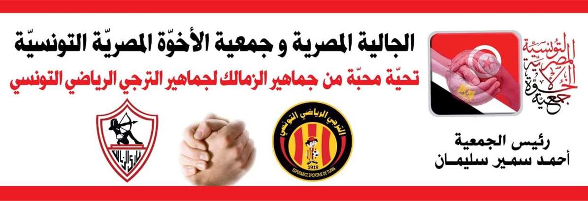 وأكد أحمد سمير أن الجمعية حاضرة في كل المناسبات المصرية التونسية وخاصة الرياضية، وأعلن عمل لافتات كبيرة ستعلق بملعب المباراة التي ستجمع الفريقين بدوري ابطال أفريقيا بإستاد رادس الدولي للتأكيد علي روح المحبة التي تجمع الفريقين الكبيرين نادي الزمالك المصري ونادي الترجي الرياضي التونسي وجمهورهما خاصة والشعب المصري والتونسي عامة.
