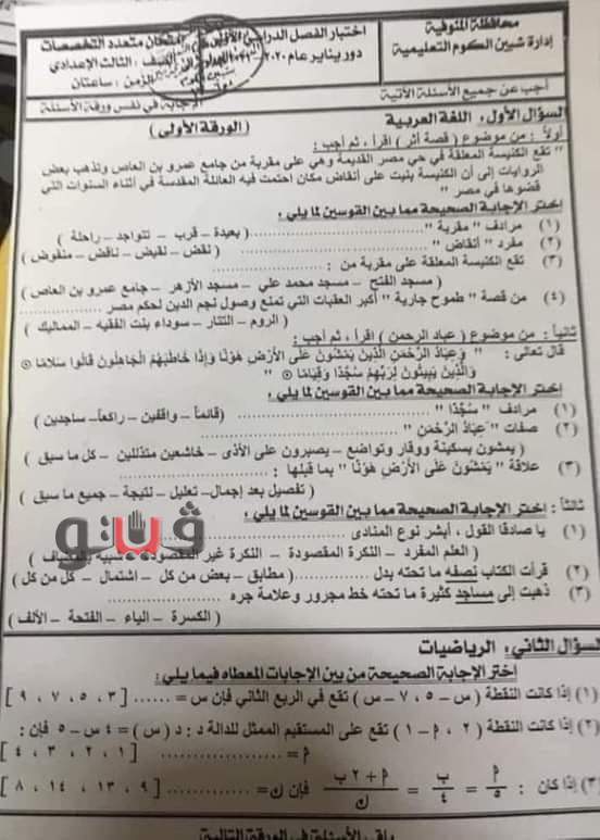 وأصدرت مديرية التربية والتعليم بياناً بشأن نماذج أسئلة تم الترويج لها على أنها الإمتحان المجمع لنهاية الفصل الدراسي الأول للصف الثالث الإعدادي العام والخاص بإدارة شبين الكوم التعليمية والمقرر عقده 7 مارس.