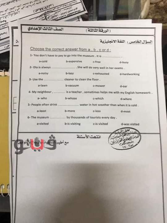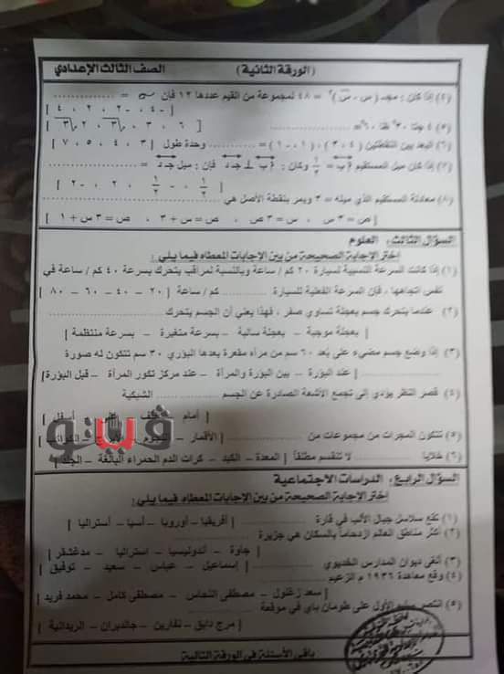تداول رواد موقع التواصل الاجتماعي "فيس بوك" في المنوفية امتحان الشهادة الإعدادية والمخطط تأديته غدًا الأحد 7-3-2021.