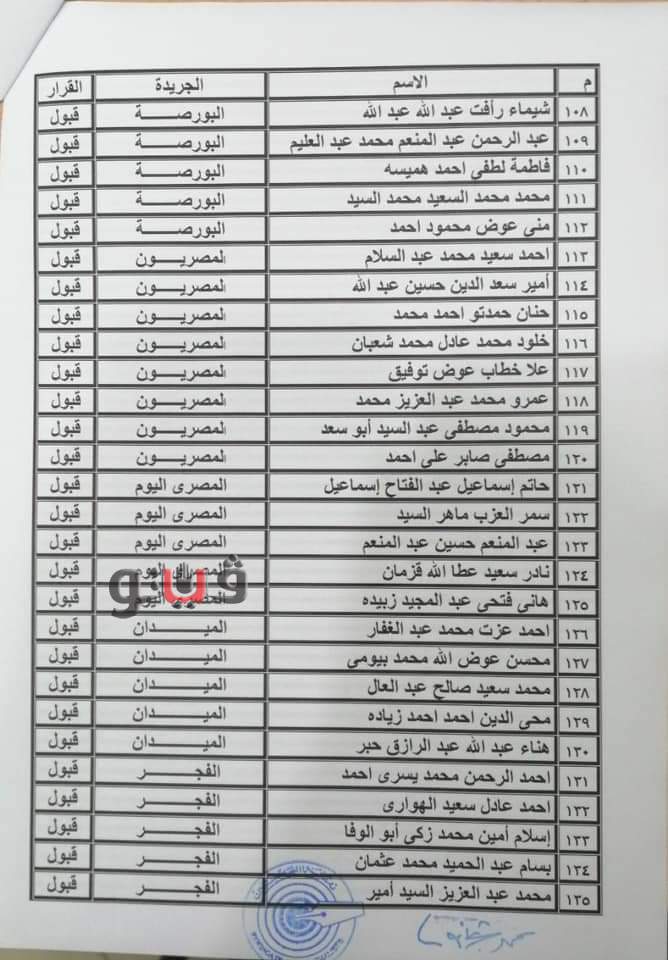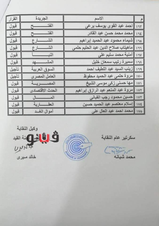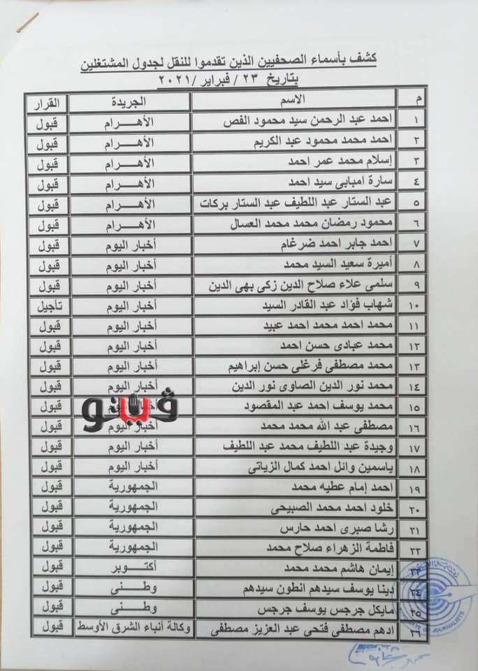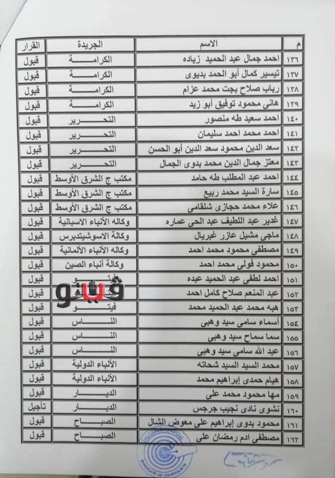 بالأسماء.. كشوف المقبولين في جدول المشتغلين بالصحفيين