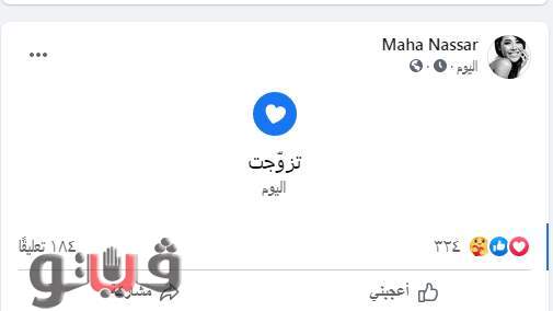وأكدت "مها" الزواج من خلال تغيير حالتها الاجتماعية على موقع «فيس بوك» إلى «متزوجة».