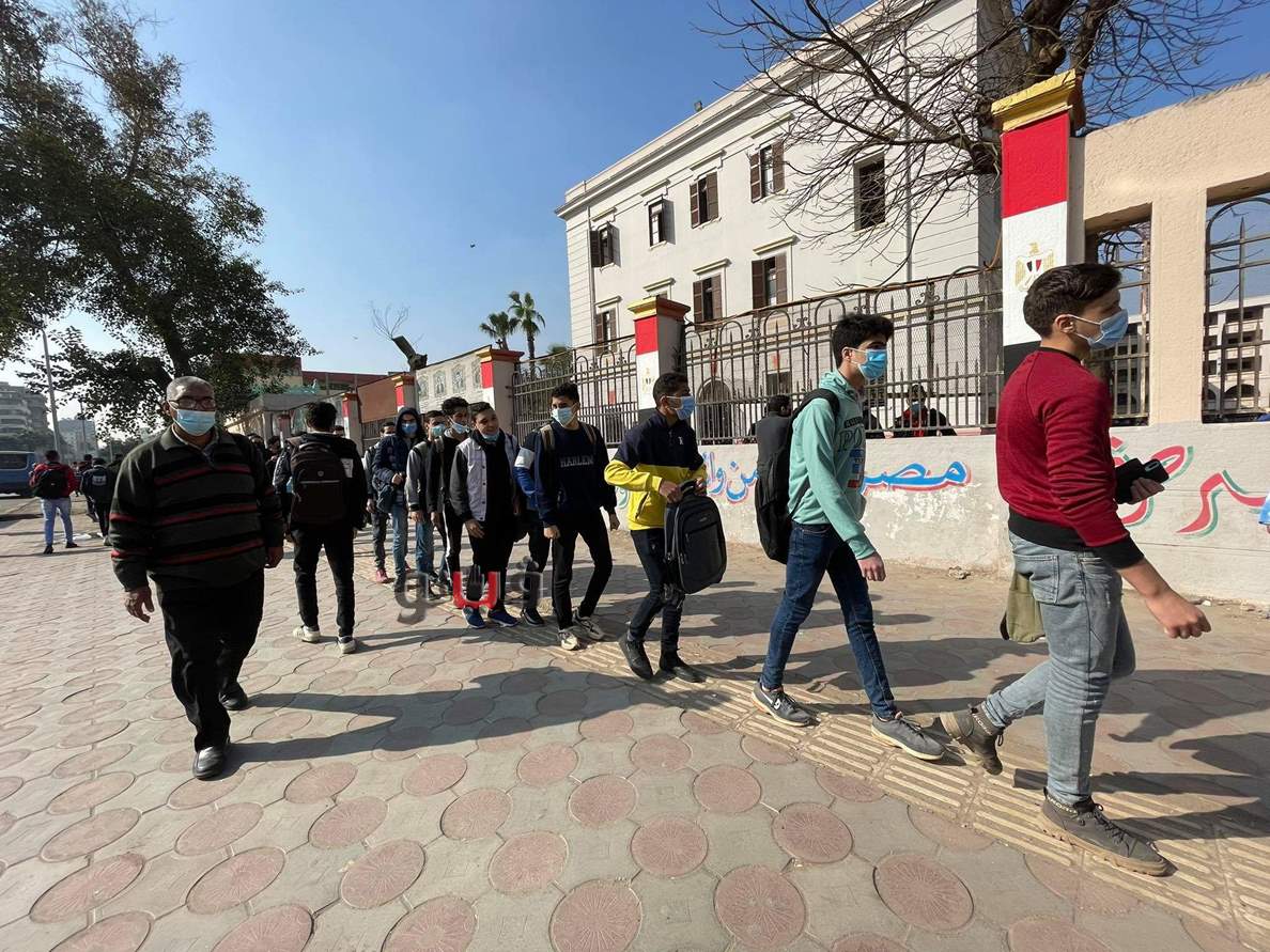 فيما شهد محيط مدرسة السعيدية الثانوية بنين بمحافظة الجيزة، تطبيق الإجراءات الاحترازية على طلاب الصف الثاني الثانوي قبل الدخول لأداء الامتحان في مادتي "الفيزياء" للشعبة العلمية والتاريخ" للشعبة الأدبية.