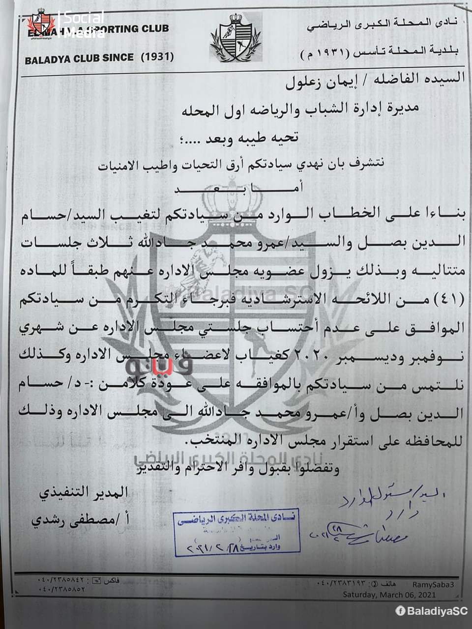 تلقى نادي بلدية المحلة خطابا رسميا من