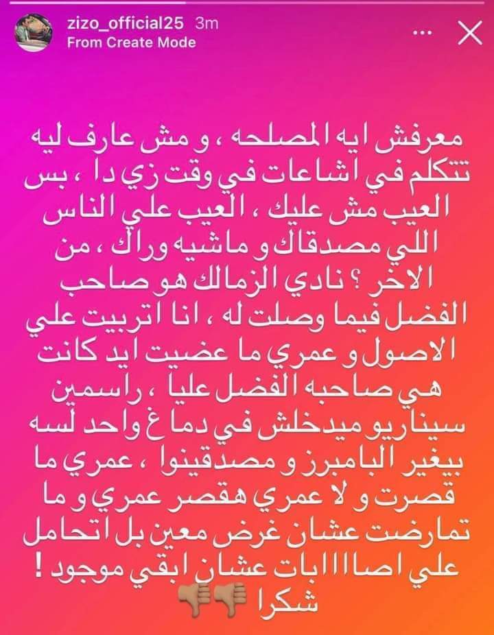 ونفى اللاعب عبر حسابه على "إنستجرام" كل ما يتردد فى ذلك الشأن، وأكد أن الزمالك صاحب الفضل عليه وكل ما يتردد عنه مجرد شائعات.