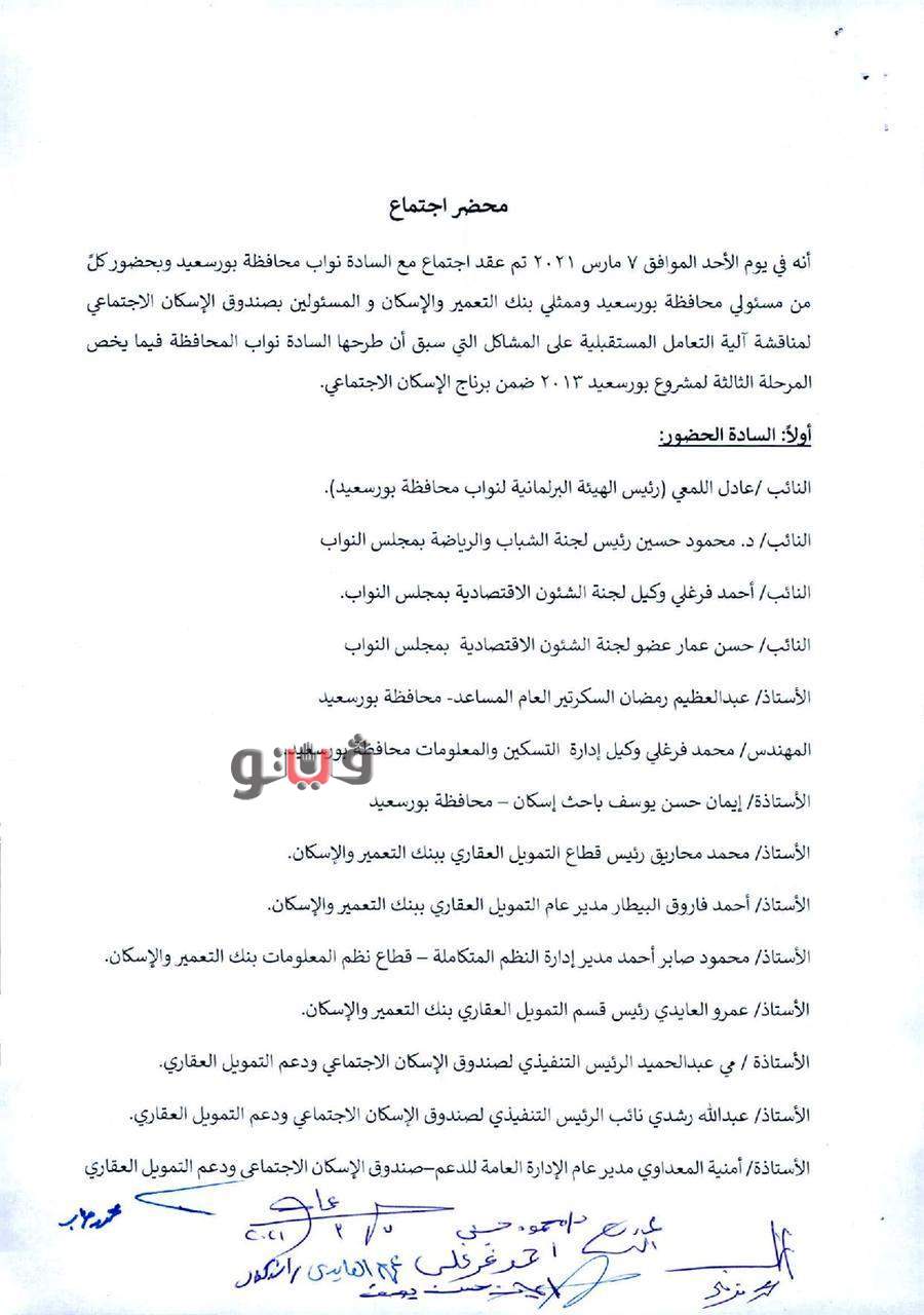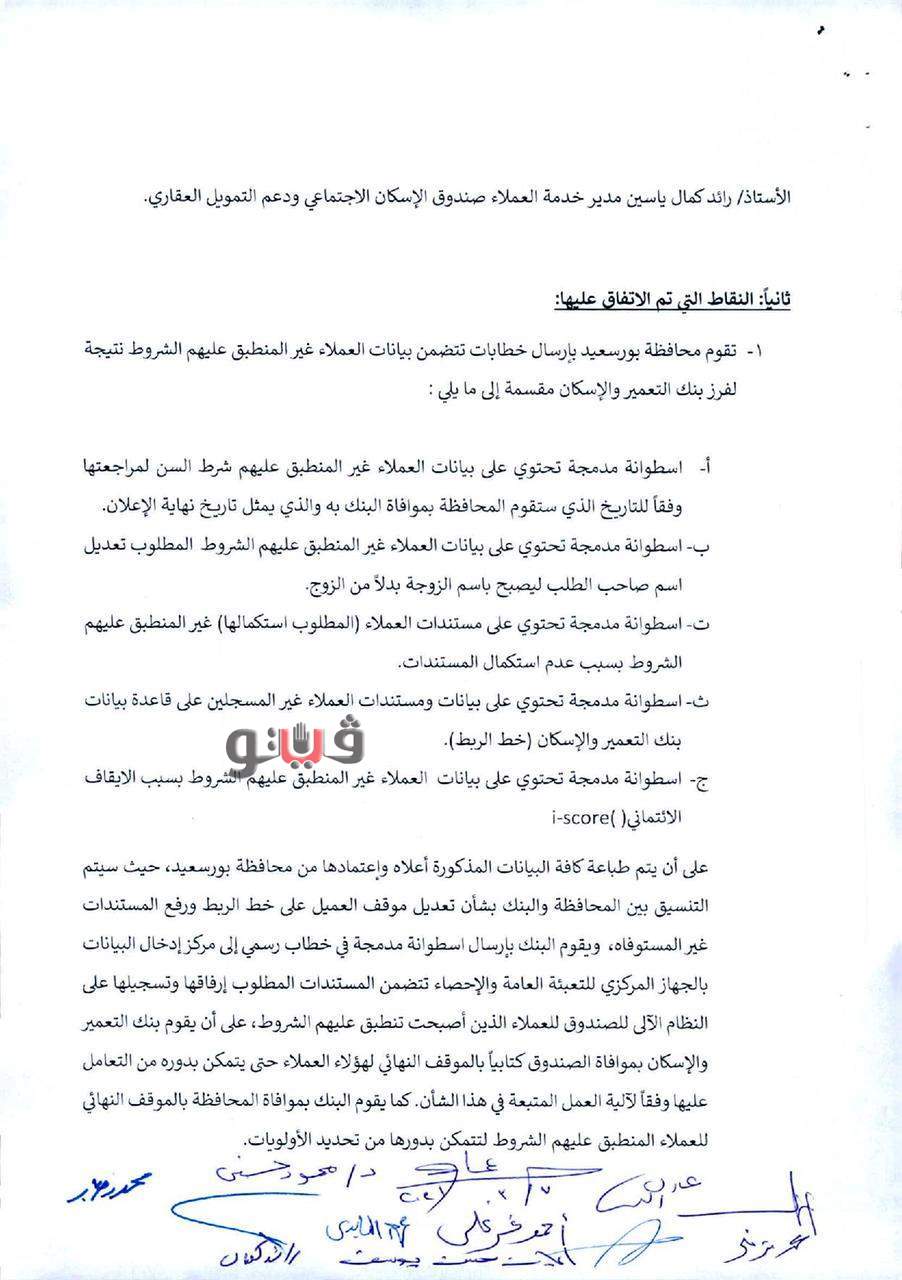 * بدء تسجيل الاسماء غير المسجله بعد إرسال محافظه بورسعيد الأسماء والبيانات محدثه علي cd لبنك التعمير والاسكان وسيتم الانتهاء من التسجيل لأول دفعه وعددها 750 إسم خلال عشر أيام من إرسال cd الذي سيتم ارساله غدا بمذكره رسمية.