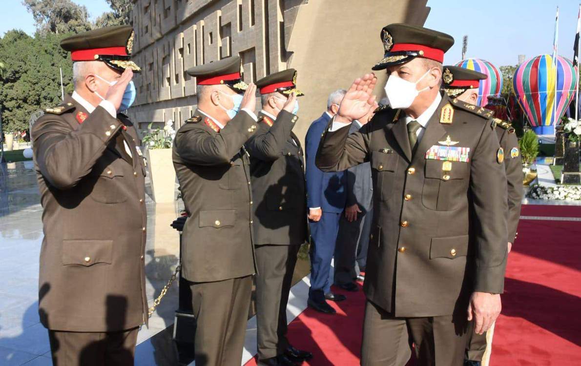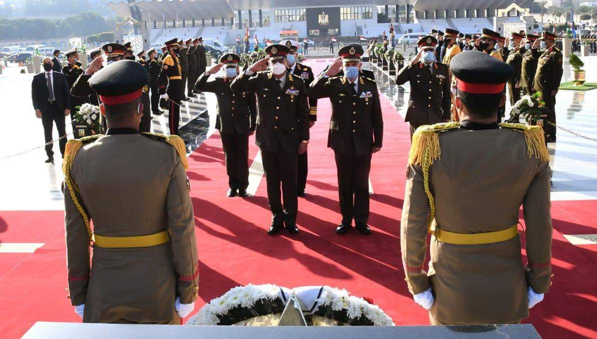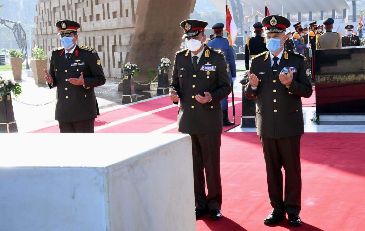 وقام القائد العام للقوات المسلحة يرافقه الفريق محمد فريد رئيس أركان حرب القوات المسلحة وقادة الأفرع الرئيسية بوضع باقة من الزهور على النصب التذكارى للجندى المجهول ، كما عزفت الموسيقات العسكرية سلام الشهيد .