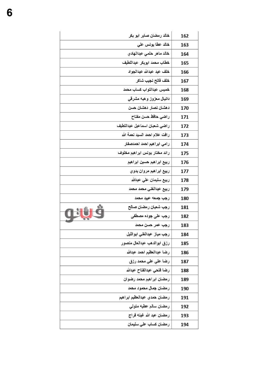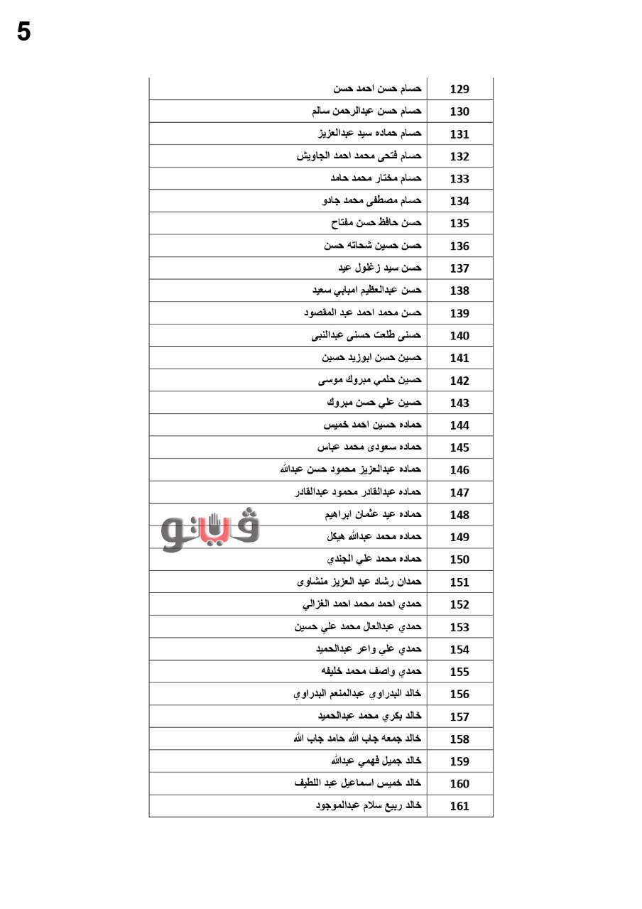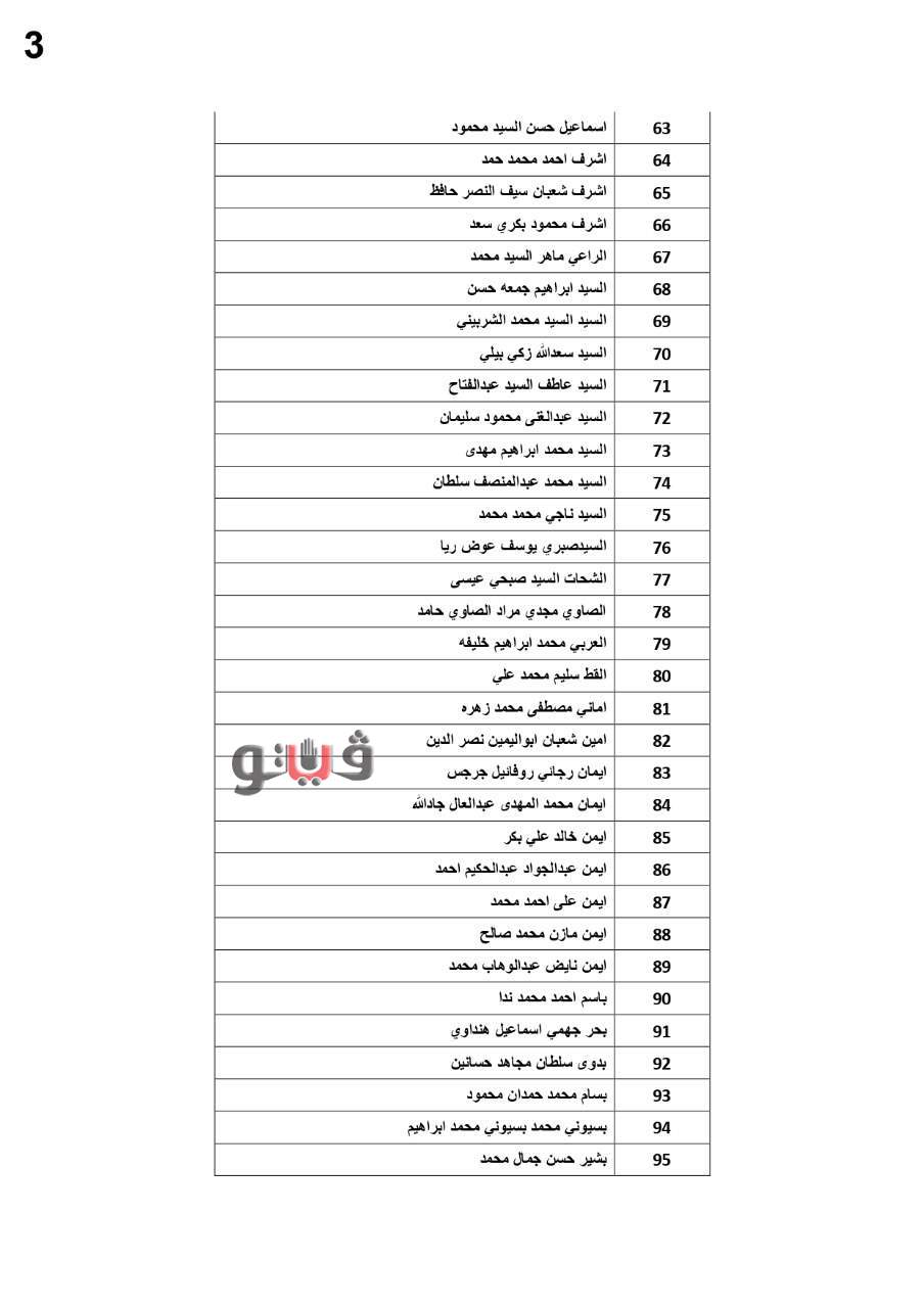 وفيما يلي الأسماء المستحقة: