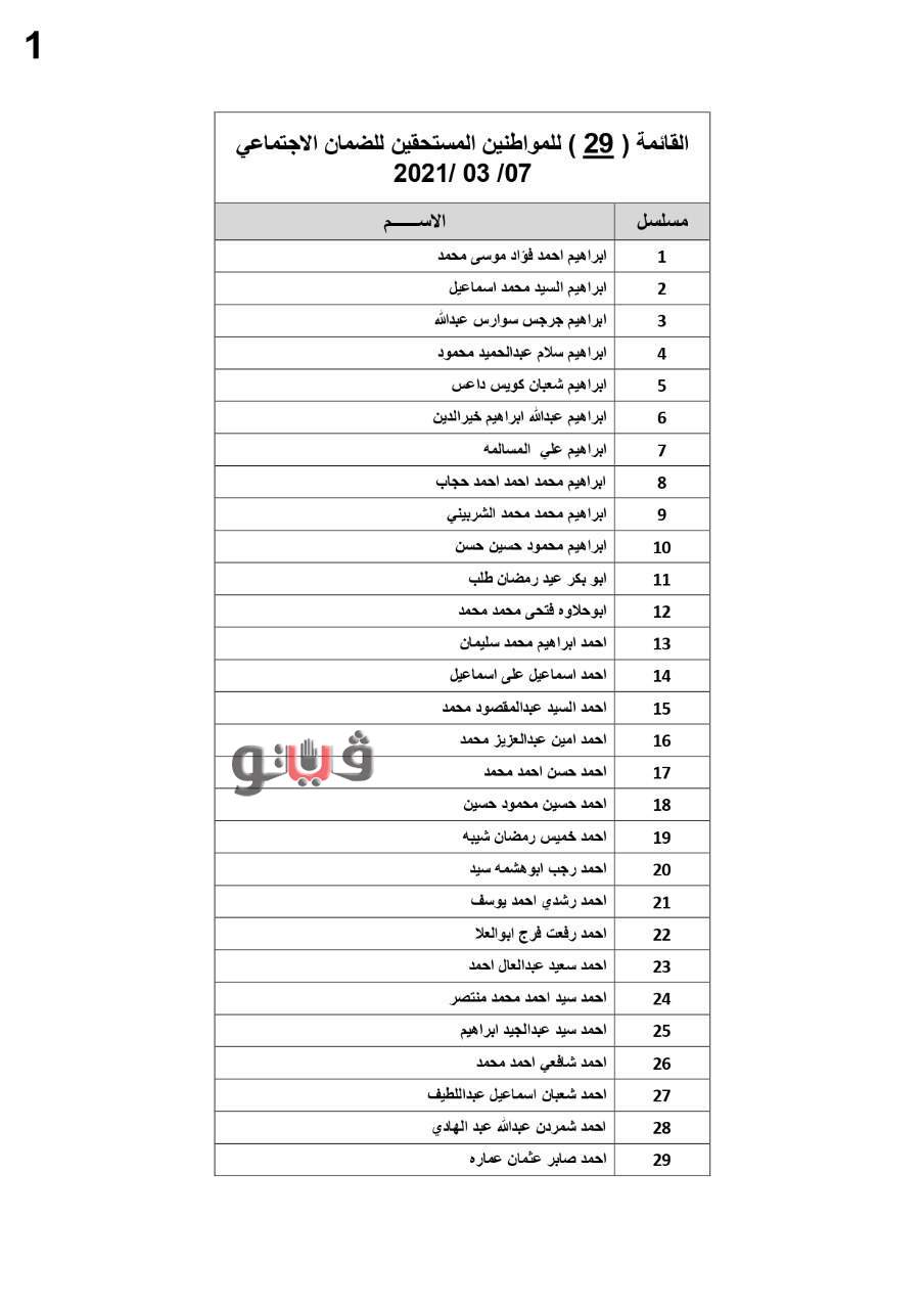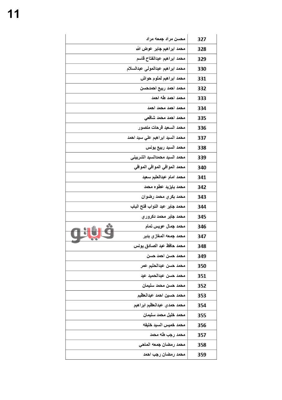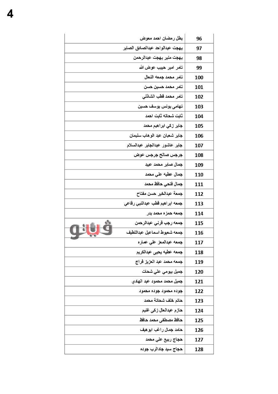 وفيما يلي الأسماء المستحقة: