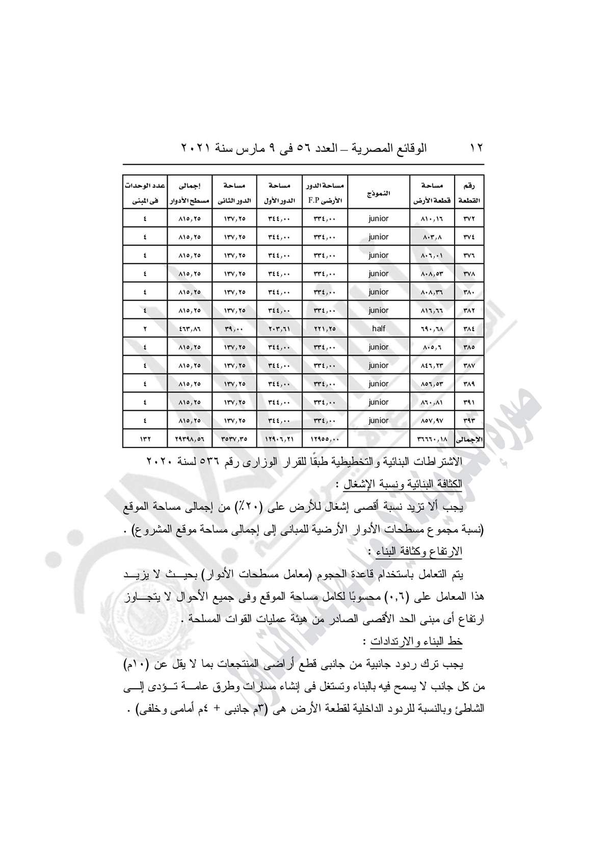 كما تلتزم الشركة بالاشتراطات البنائية المعمول بها كحد أقصى وبشرط عدم تجاوز قيود الارتفاع المسموح بها من قبل وزارة الدفاع.
