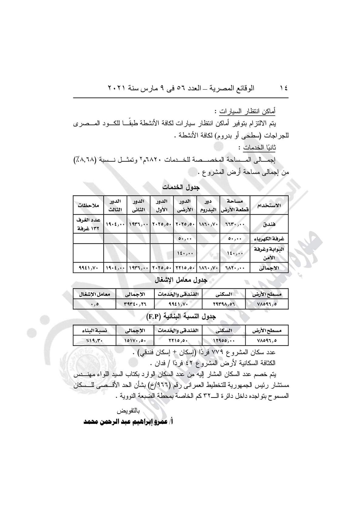 على أن تلتزم الشركة بالتعهد الموقع منها بأن منطقة الخدمات لخدمة قاطنى المشروع فقط، وفى حالة التخديم من الخارج يتم إعادة تسعير منطقة الخدمات بواسطة اللجان المختصة بالهيئة.
