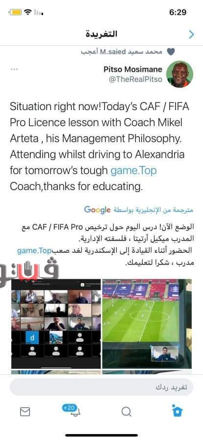 حرص الجنوب إفريقي بيتسو موسيماني، المدير الفني للفريق الأول لكرة القدم بالنادي الأهلي، على المشاركة في إحدى الدورات التدريبية التابعة للاتحاد الدولي "فيفا" بالتعاون مع الاتحاد الافريقي الكاف وعنوانها الاهتمام بالفلسفة الإدارية وشهدت الدورة التدريبية مشاركة ميكل أرتيتا، المدير الفني لنادي أرسنال الإنجليزي.