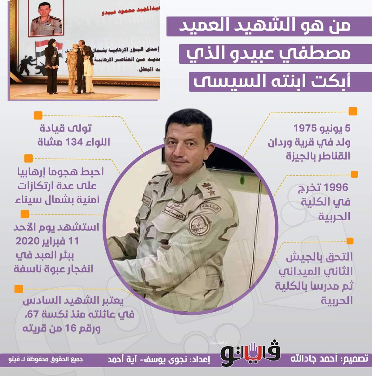 من هو الشهيد العميد مصطفي عبيدو الذي أبكت ابنته السيسى؟ | إنفوجراف