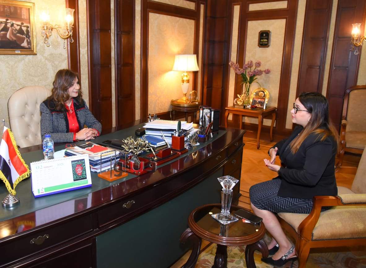 وزيرة الهجرة تلتقي عفت مصطفى المرشحة ضمن قائمة أقوى 100 شخصية عربية