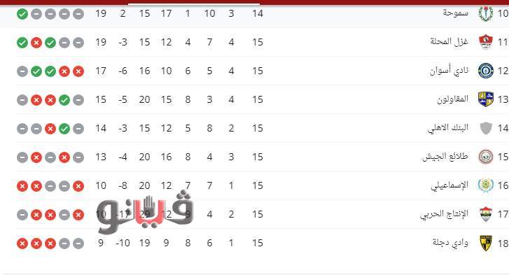 تنشر "فيتو " جدول ترتيب الدوري المصري ، قبل مباراة الفريق الأول لكرة القدم بنادي الزمالك، أمام سيراميكا كليوباترا في المباراة المؤجلة من الجولة 15 ببطولة الدوري الممتاز للموسم الحالي.
