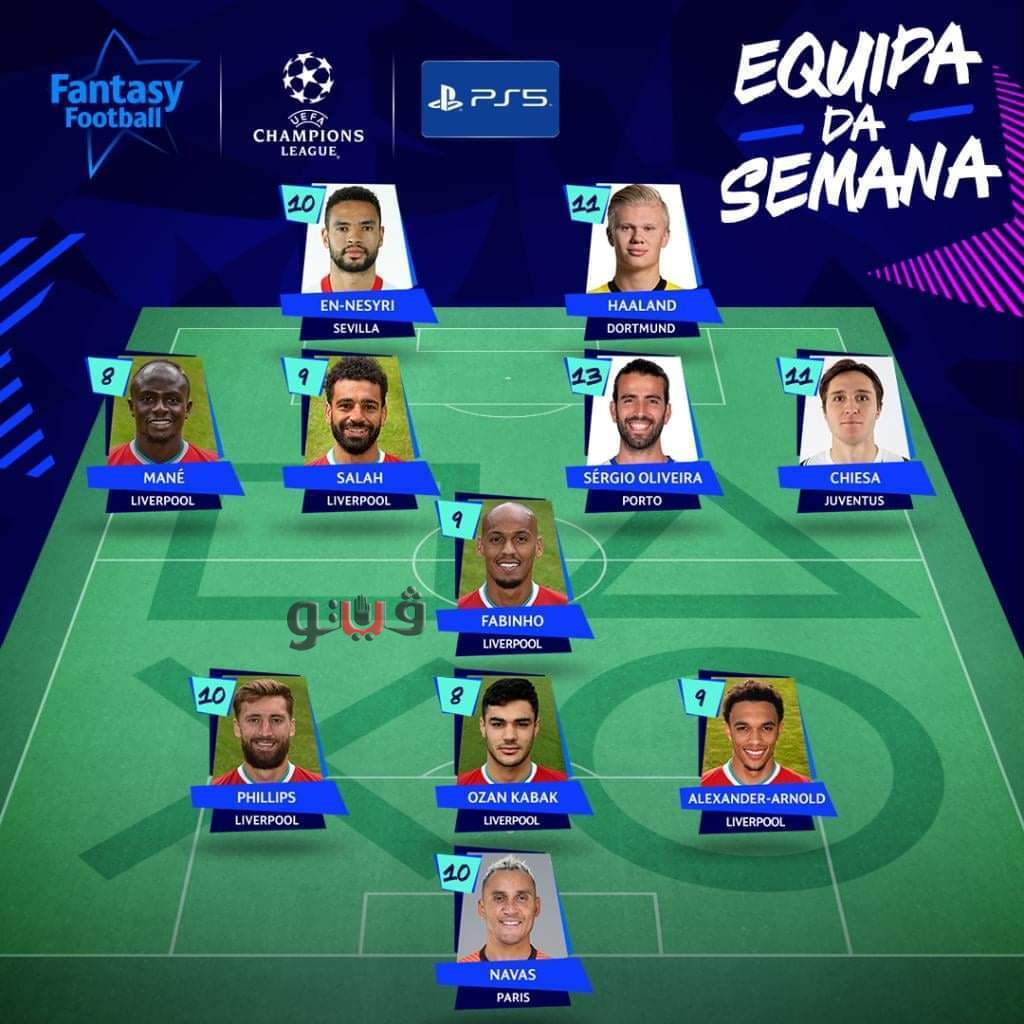 وتواجد محمد صلاح لاعب المنتخب الوطني وفريق ليفربول على رأس التشكيل المثالي للأسبوع بعدما سجل هدفا في فوز فريقه أمام لايبزيج الألماني.