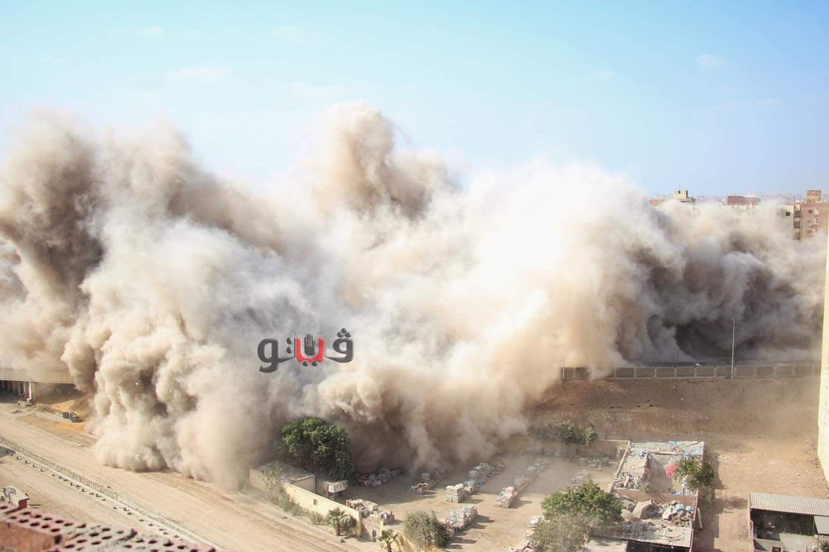 وأضافت المصادر، أن اللجنة الهندسية قررت طريقة هدم العقار بتفجيره على مرحلتين أو ثلاث مراحل، وحددت له الميل على قطعة أرض فضاء خلفه أخلتها أجهزة محافظة الجيزة من كميات كبيرة من القمامة لتصبح مسطحة تمامًا، وتم وضع كميات كبيرة من الرمال بها حتى تقلل من صدمة ارتطام أنقاض العقار بها.