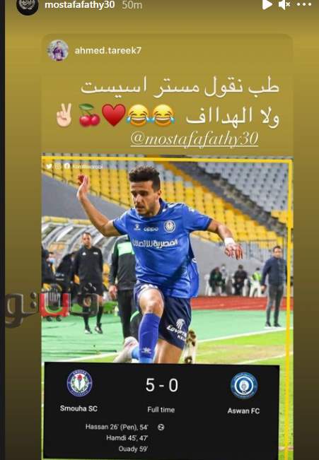 سموحة باللاعب مصطفى فتحي لاعب نادي الزمالك السابق، بعد أدائه مع فريقه سموحة في الفوز