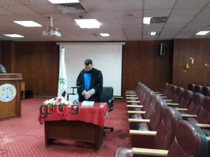 ومنحت اللجنة الباحث درجة الماجستير بتقدير ممتاز، وذلك مع تطبيق كامل للإجراءات الاحترازية لمواجهة فيروس كورونا.