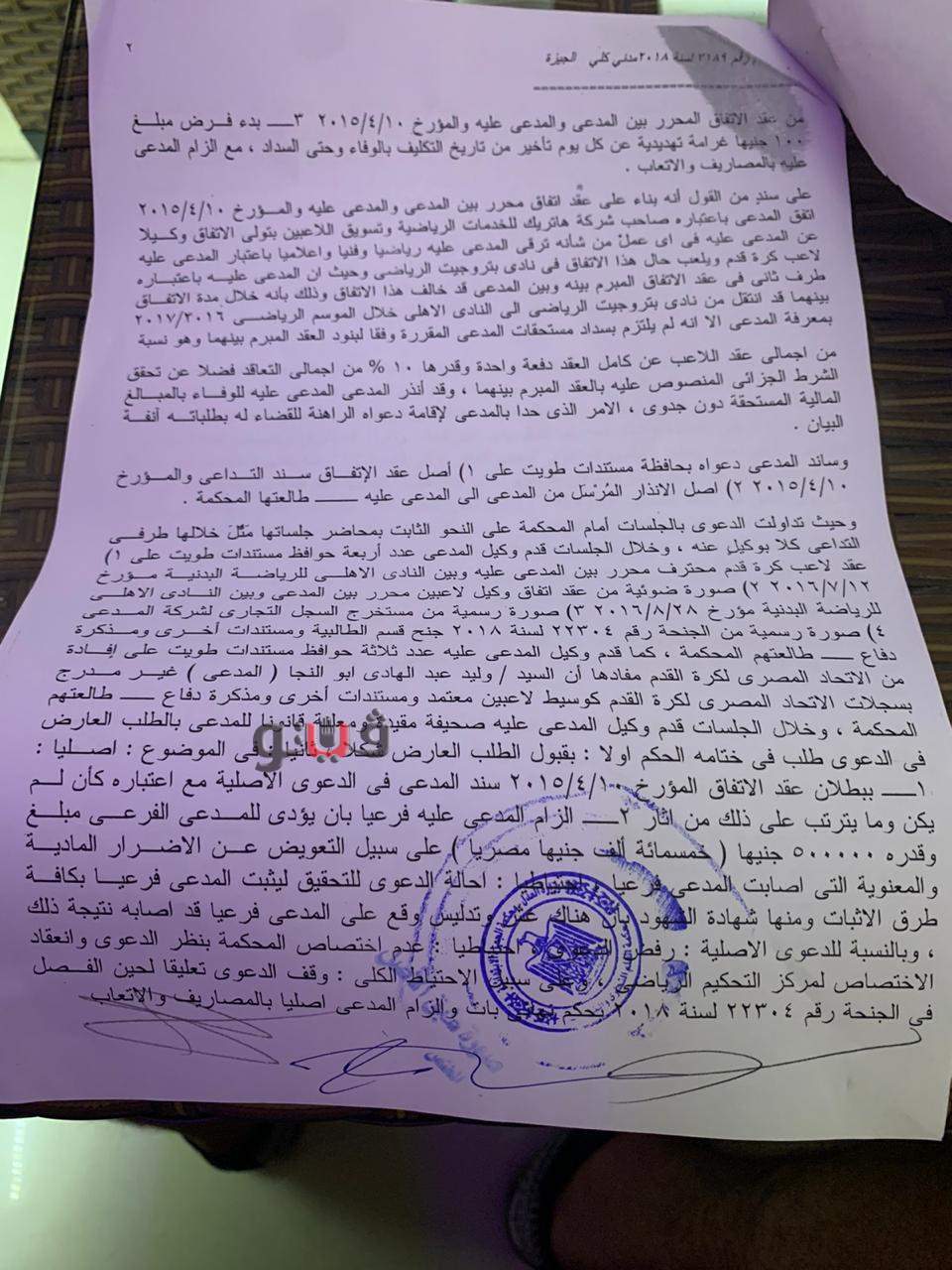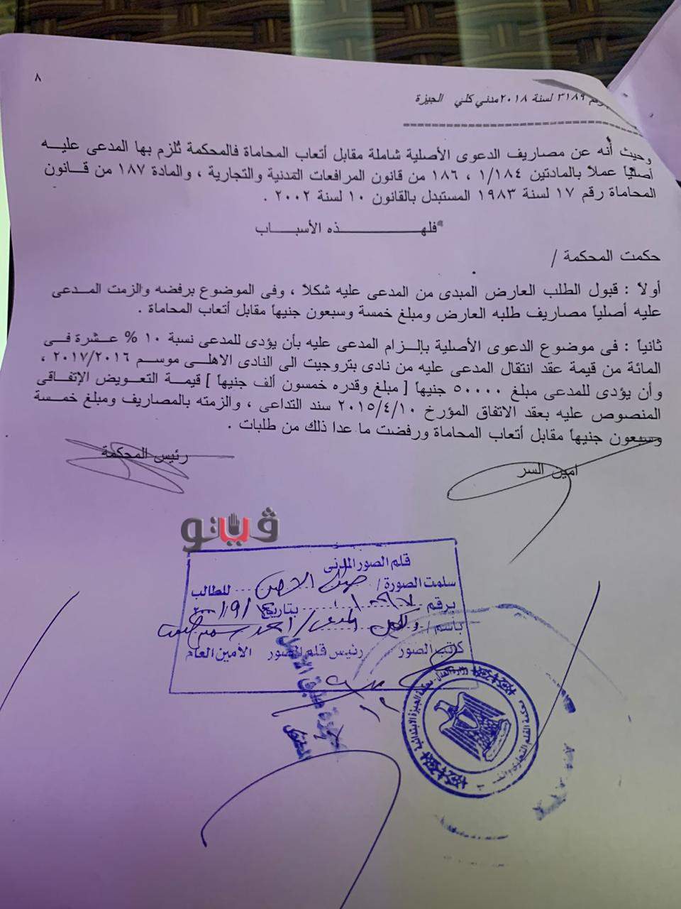 المحكمة تلزم محمد الشناوي بسداد مليون و550 ألف جنيه لوكيله السابق