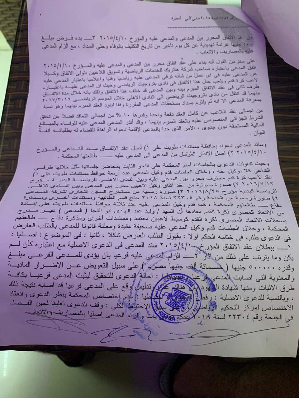 وتابع أن وكيل الشناوي السابق حصل على تأييد نفس الحكم من المحكمة كحكم نهائي.