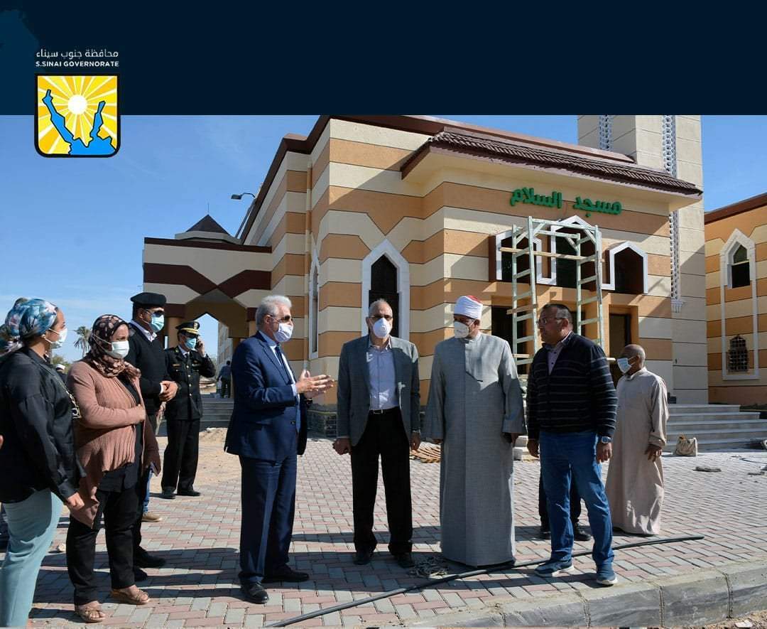 كما تفقد المحافظ ومرافقيه أعمال رفع كفاءة مسجد السلام بمدينة طور سيناء بجوار المديرية المالية بتكلفة تقديرية مليوني جنيه والمقام على مساحة 900 متر، تمهيداً لافتتاحه في العيد القومي للمحافظة مارس الجاري بعد الانتهاء من أعمال التشطيبات الجارية بالمسجد.