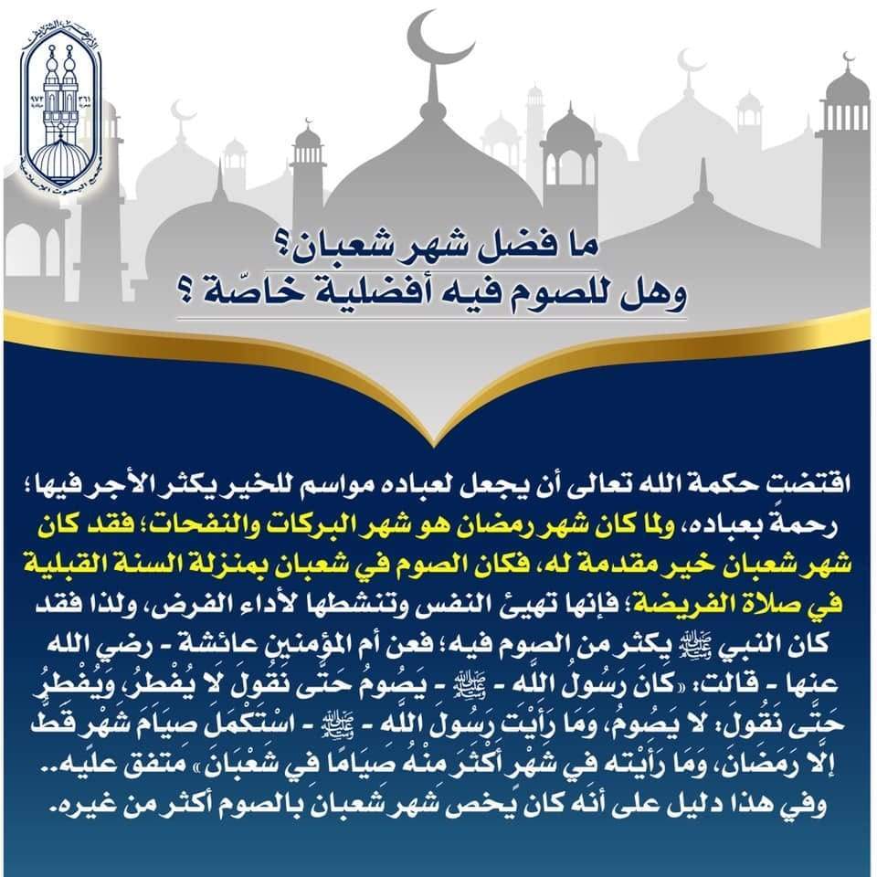 ورد سؤال إلى لجنة الفتوى بمجمع البحوث الإسلامية بالأزهر الشريف يقول فيه صاحبه: ما فضل شهر شعبان؟ وهل للصوم فيه أفضلية خاصّة؟