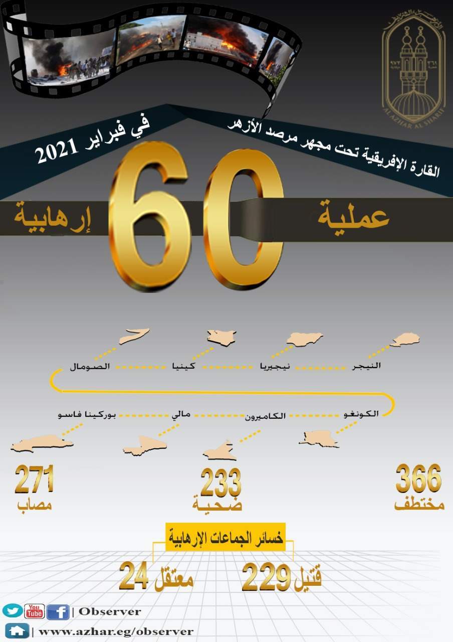 الأزهر يكشف حصيلة العمليات الإرهابية في أفريقيا خلال فبراير| إنفوجراف