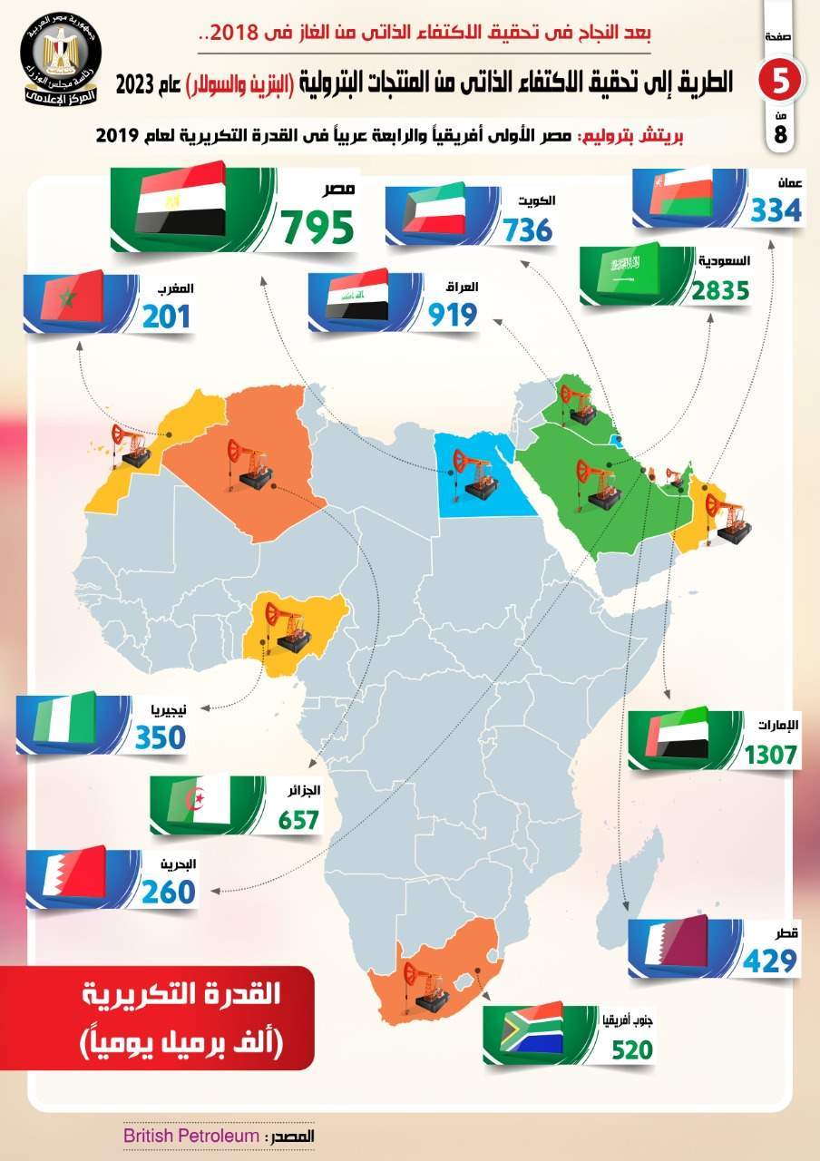 ونوه التقرير عن أن مصر جاءت في المركز الأول إفريقياً والرابع عربياً في القدرة التكريرية لعام 2019 بواقع 795 ألف برميل يومياً، وذلك وفقاً لبريتش بتروليم.