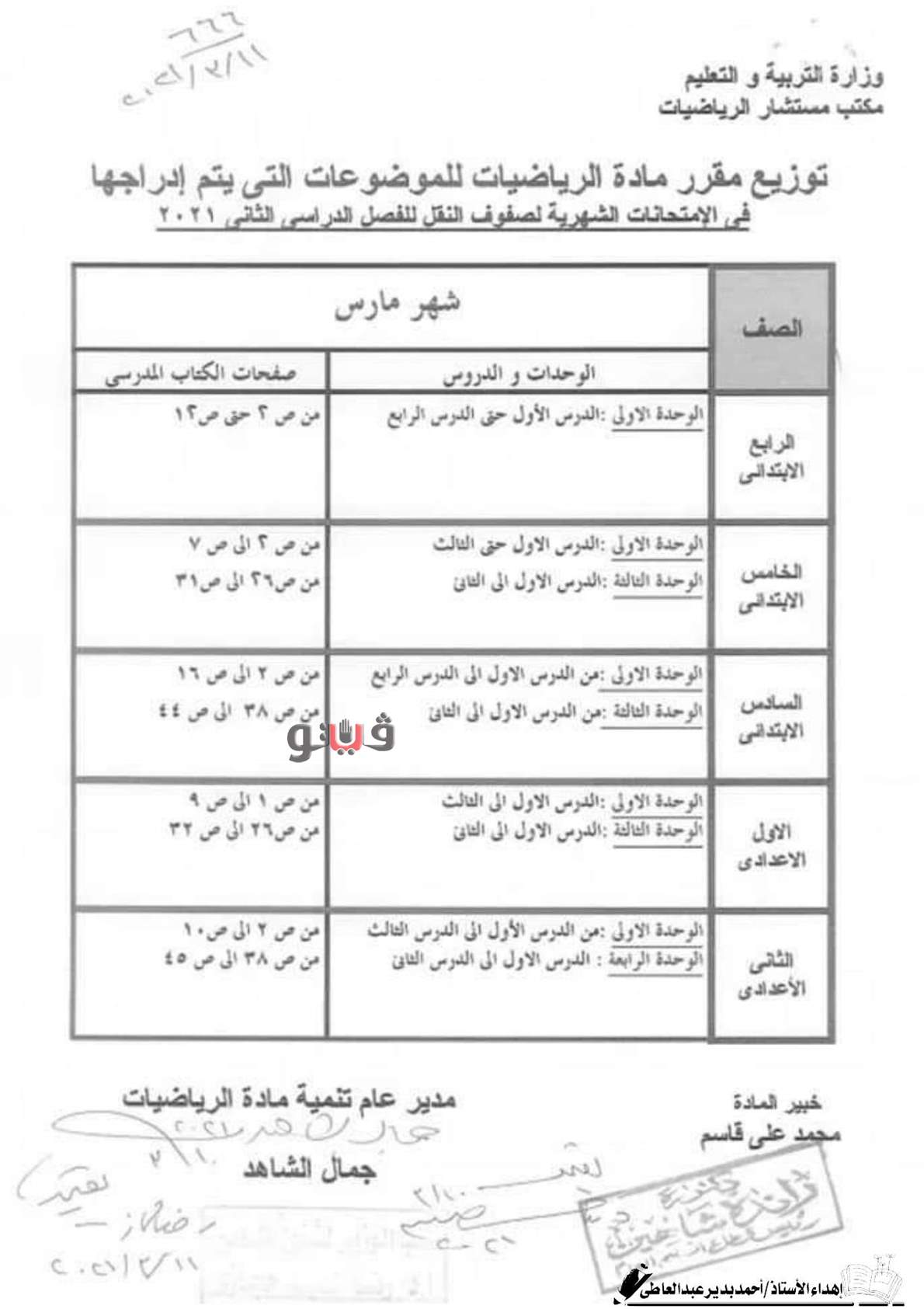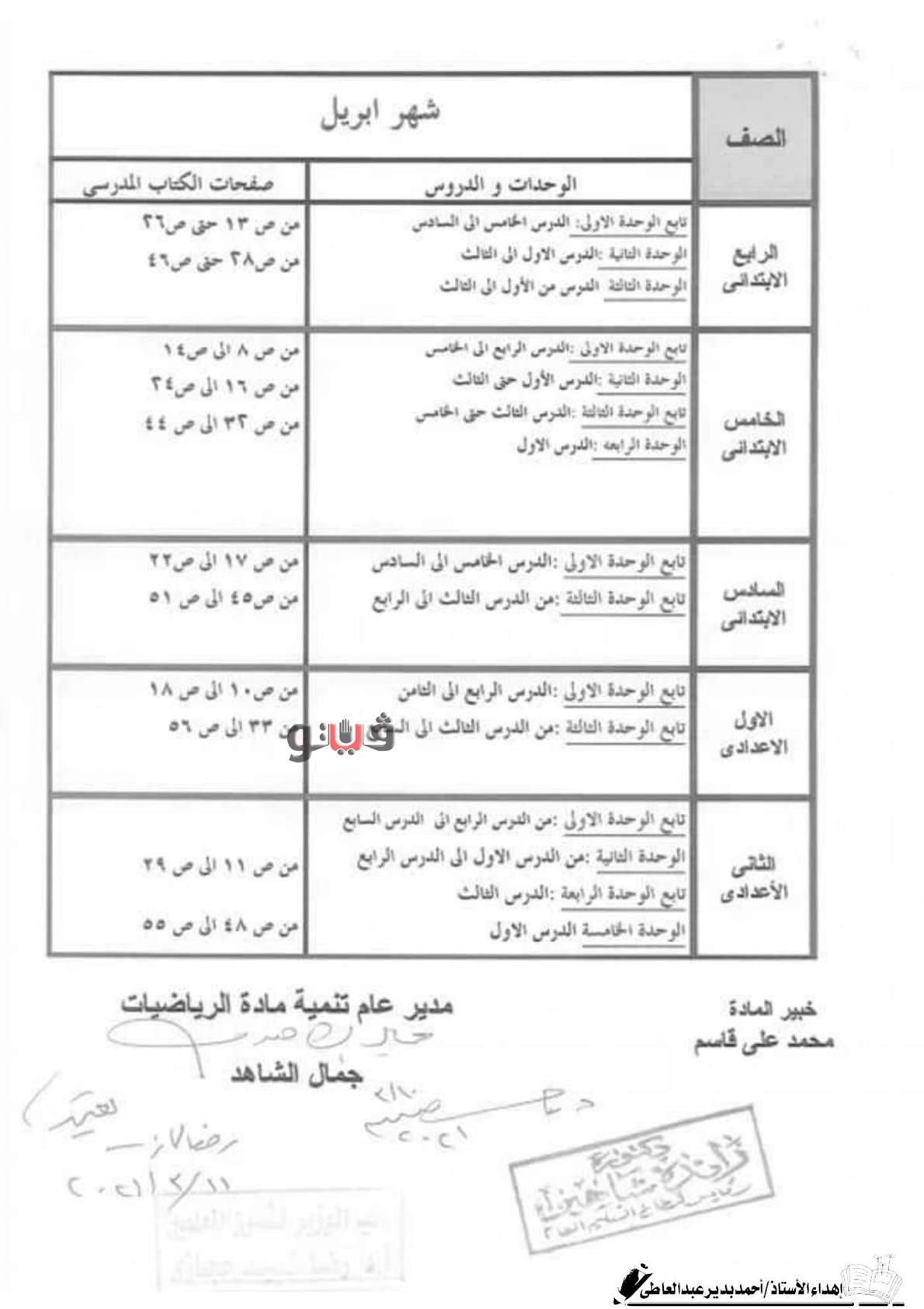 توزيع منهج الرياضيات للصفوف من 4 ابتدائي لـ2 إعدادي