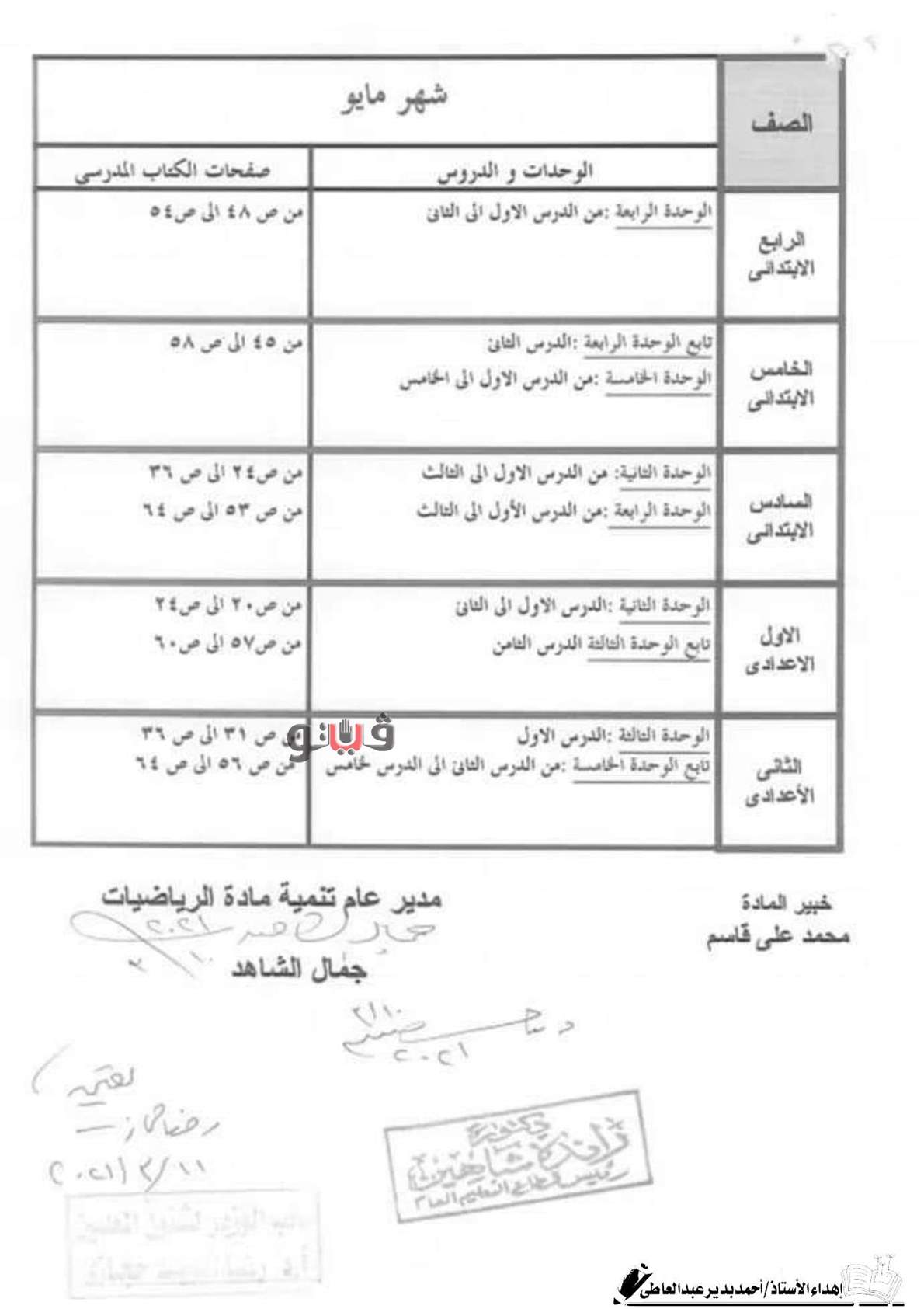 مقررات منهج الرياضيات شهر مايو