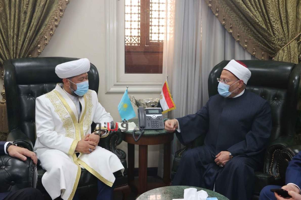 استقبل الدكتور شوقي علام، مفتي الجمهورية، رئيس الأمانة العامة لدور وهيئات الإفتاء في العالم- وفدًا رفيع المستوى من الإدارة الدينية لمسلمي كازاخستان، برئاسة الشيخ ناوريزباي حاج تاجونولي -المفتي الأعلى ورئيس الإدارة الدينية لمسلمي كازاخستان- وسفير كازاخستان بالقاهرة، والوفد المرافق لهما لبحث توقيع اتفاقية تعاون بين دار الإفتاء المصرية والإدارة الدينية لمسلمي كازاخستان.